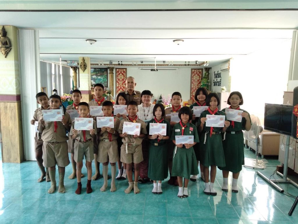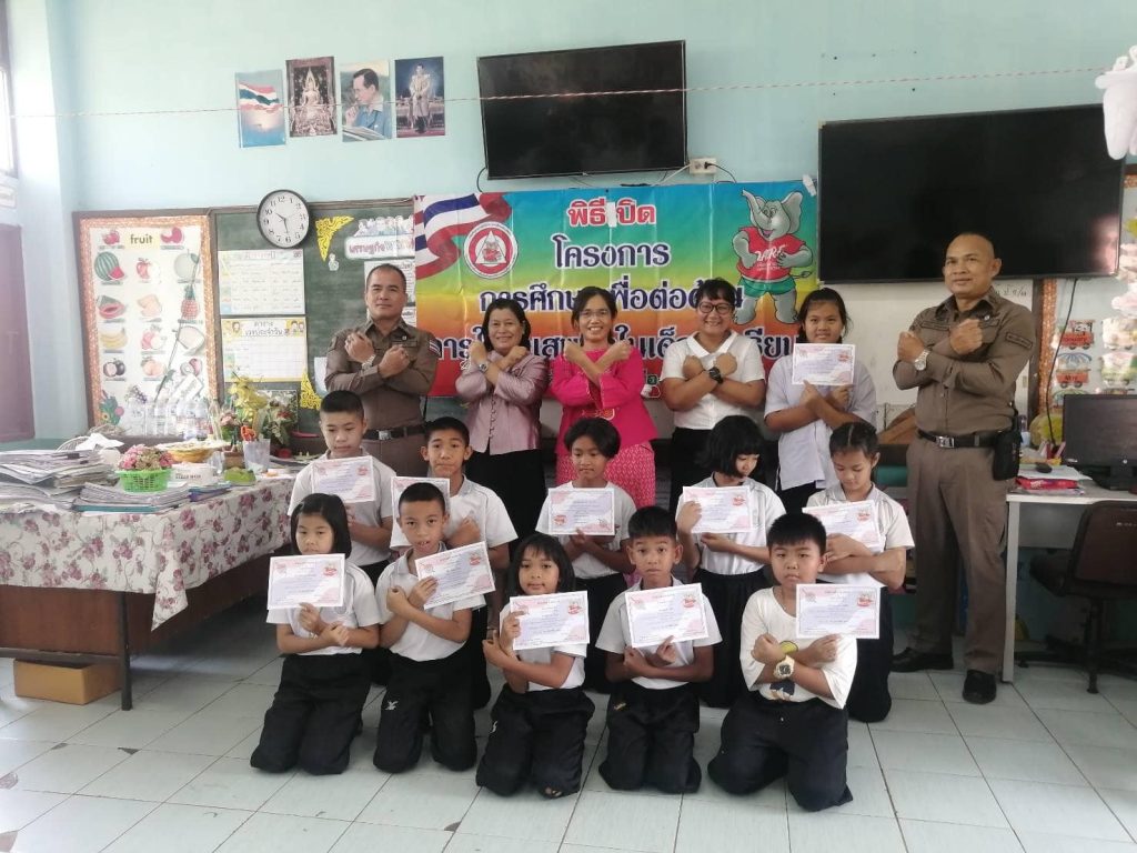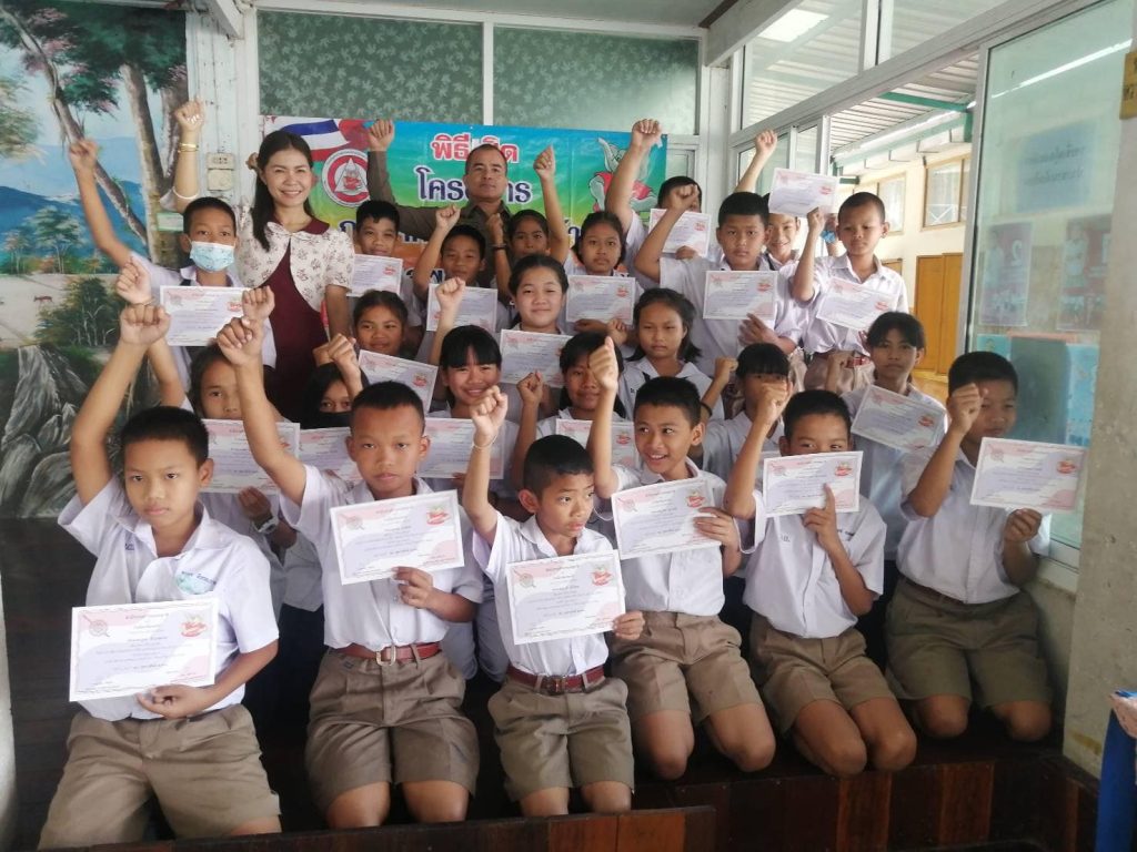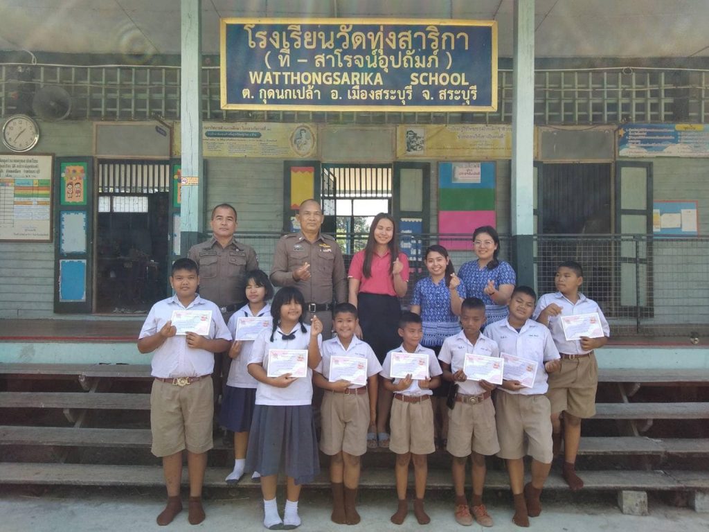 ครูตำรวจ​ D.A.R.E​ สภ.เมืองสระบุรี มอบใบประกาศแก่เด็กนักเรียน​ D.A.R.E. ตามโครงการเพื่อต่อต้านการใช้ยาเสพติดในเด็กนักเรียน