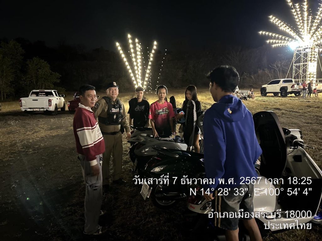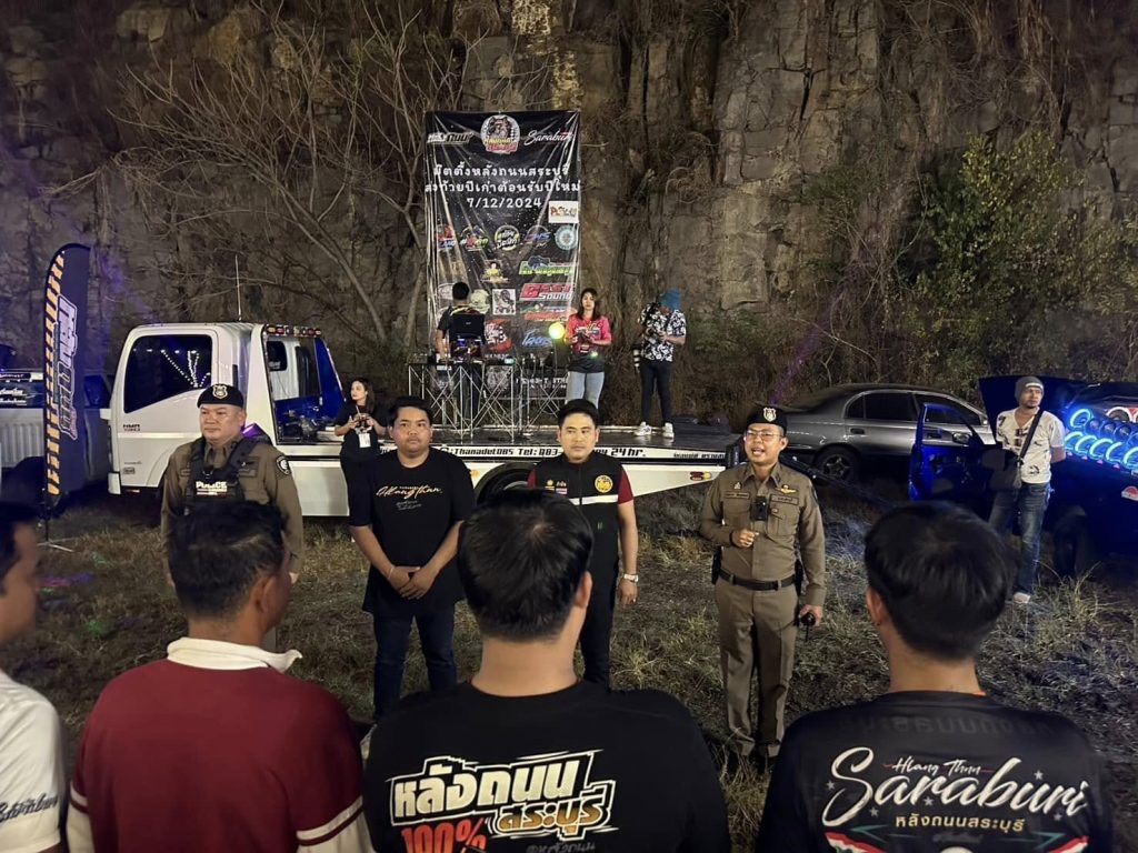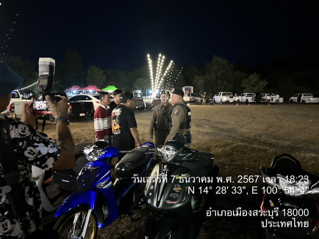 ตรวจสอบ และดูแลความสงบเรียบร้อย ความถูกต้องของรถ และกำชับการปฏิบัติตามกฎหมายอย่างเคร่งครัด งานมิตติ้งหลังถนนสระบุรี ส่งท้ายปีเก่าต้อนรับปีใหม่ บริเวณ ผ่าไทร็อค ต.หนองยาว อ.เมือง จ.สระบุรี