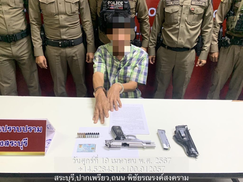 -ได้จับกุมตัว ชายอายุ 62 ปี โดยกล่าวหาว่า พกพาอาวุธปืนเเละเครื่องกระสุนปืนไปในเมือง หมู่บ้าน ทางสาธารณะ โดยไม่ได้รับอนุญาต