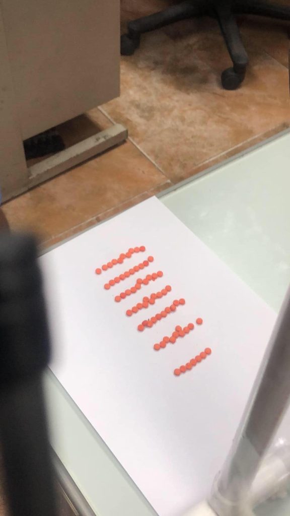 ยาเสพติดให้โทษประเภท 1 ชนิดเม็ดสีส้มกลมแบนมีอักษร WY ประทับอยู่บนเม็ดยา จำนวน 67 เม็ด