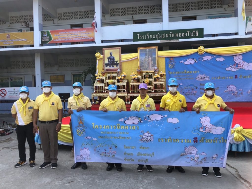 พ.ต.ท.ศิลป์ชัย อ่ำศรี รอง ผกก.(สอบสวน)สภ.มวกเหล็ก ปฏิบัติราชการ สภ.เมืองสระบุรี พร้อมเจ้าหน้าที่ตำรวจจิตอาสา สภ.เมืองสระบุรี ,ฝ่ายปกครอง , ประชาชน และนักเรียนจิตอาสา ร่วมกิจกรรมจิตอาสาพัฒนาปรับปรุงภูมิทัศน์ เพื่อถวายเป็นพระราชกุศล และรำลึกพระมหากรุณาธิคุณ ของพระมหากษัตริย์ไทย เนื่องในวันสมเด็จพระนเรศวรมหาราช ณ บริเวณถนนหน้าเทศบาลตำบลป๊อกแป๊ก หมู่ที่ 1 ต.หนองโน อ.เมือง จ.สระบุรี