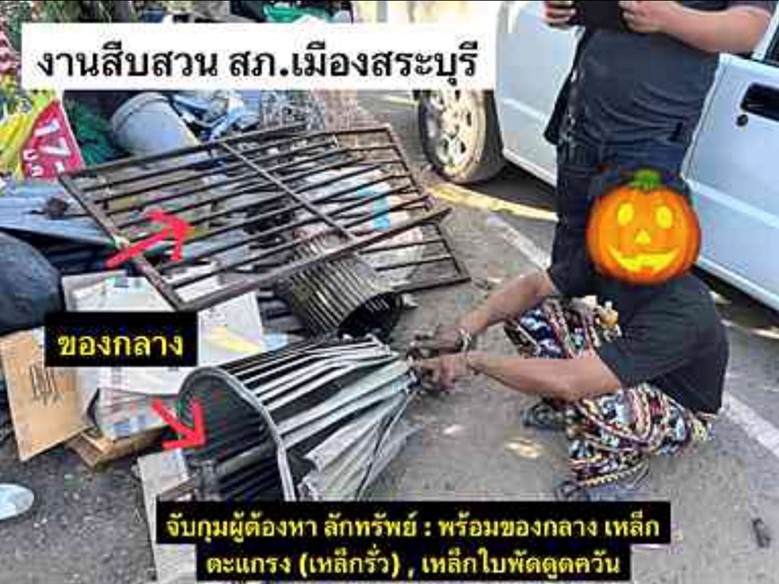 ของกลาง “ เหล็กใบพัดดูดควัน จำนวน ๒ ตัว และเหล็กตะแกรง จำนวน ๒ ชิ้น ”