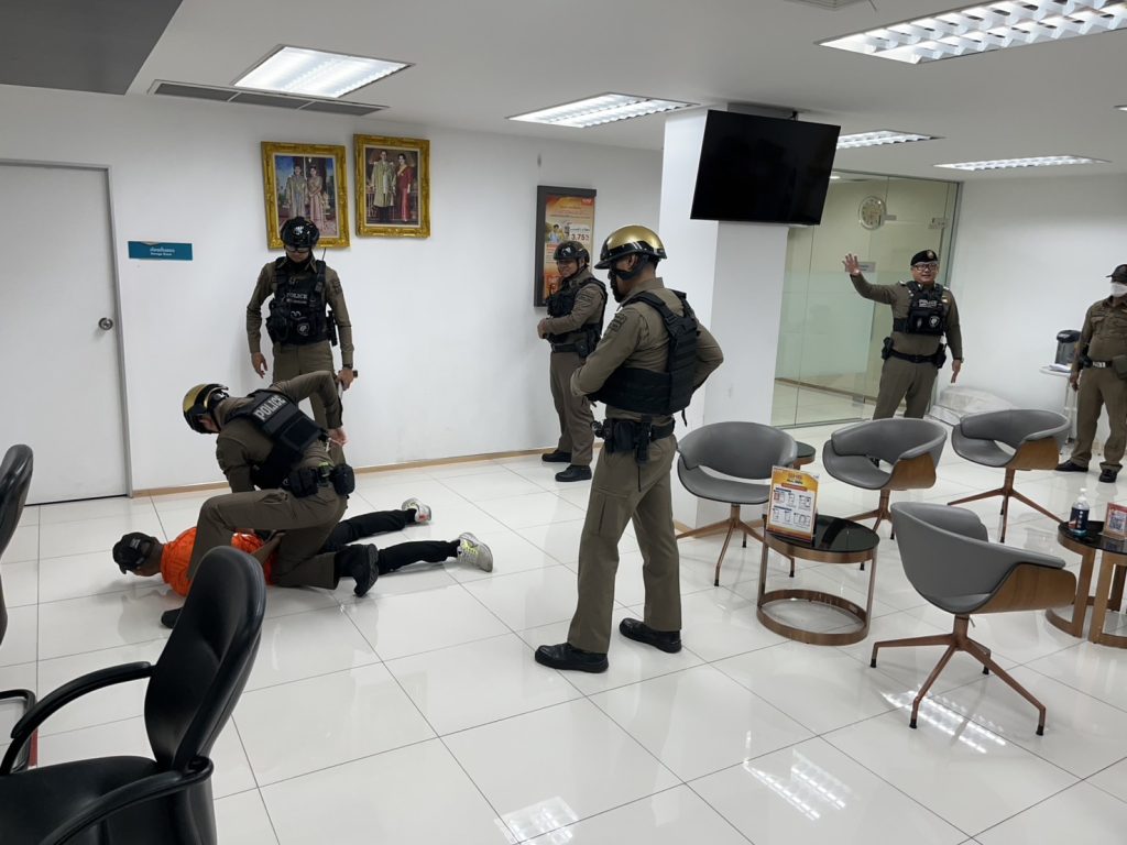 ดำเนินการ ซักซ้อมแผนเผชิญเหตุ การรับมือกรณีเหตุชิงทรัพย์และก่อความเดือดร้อนรำคาญ