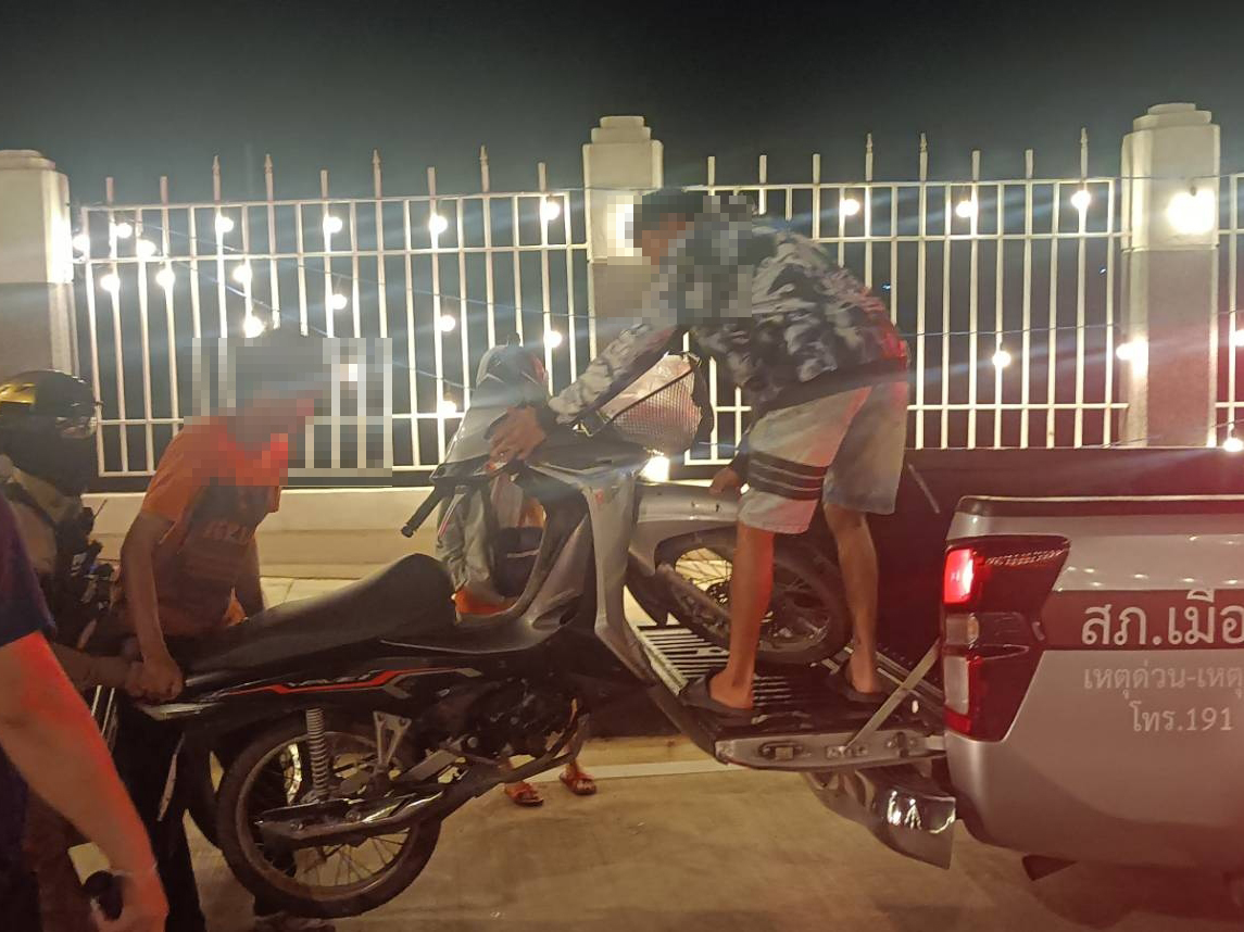 ตรวจยึดรถจักรยานยนต์จำนวน 2 คัน และทำประวัติ จำนวน 3 คน ดำเนินตามกฎหมายต่อไป