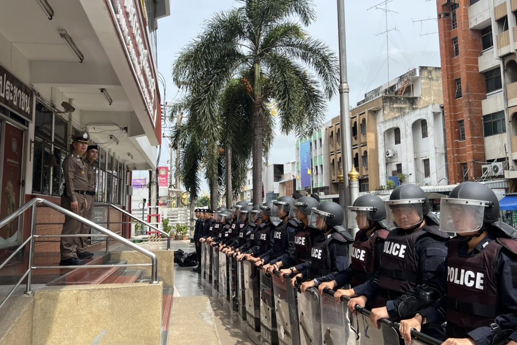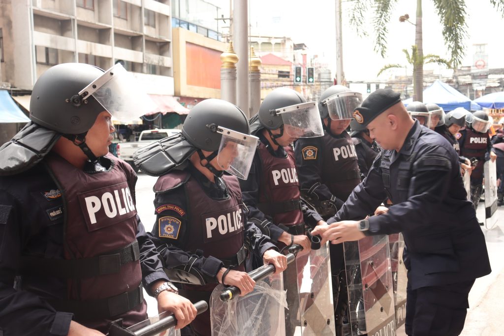 ได้ร่วมกันตรวจสอบความพร้อมของกำลังพลควบคุมฝูงชน (คฝ.) กองร้อยที่ 1 และ 2 พร้อมอุปกรณ์ประจำกาย