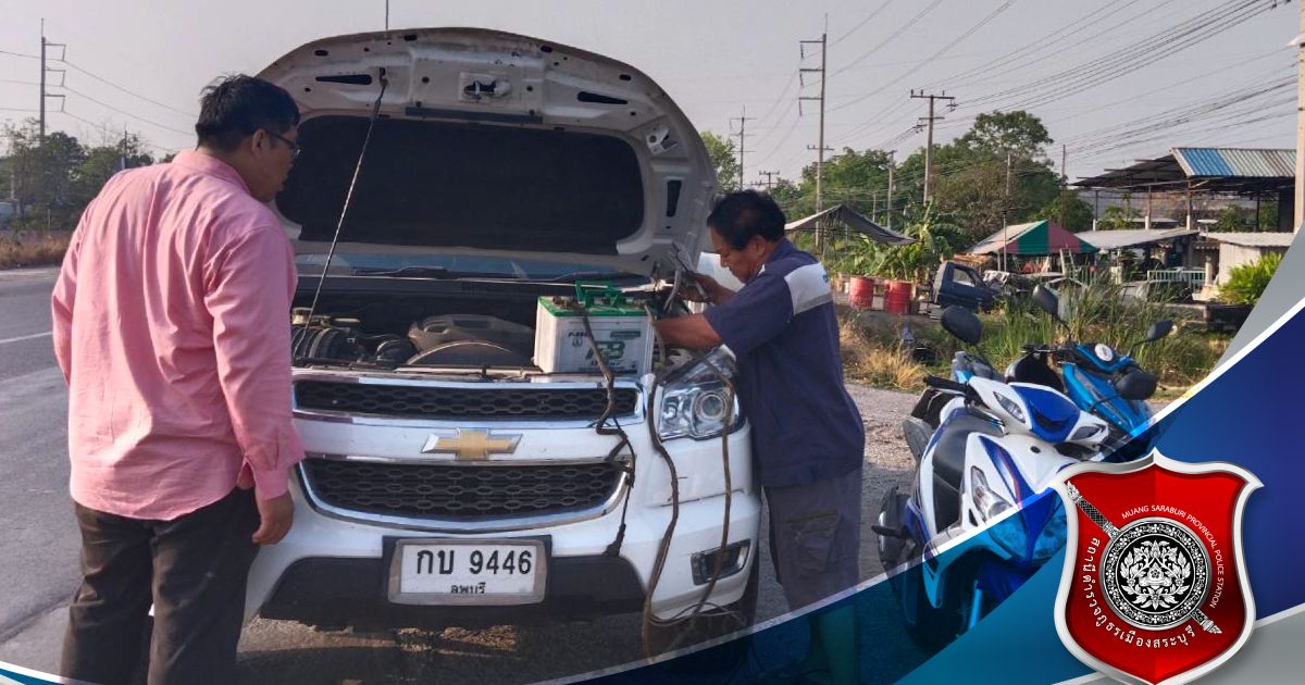 ร.ต.ท.สาธิต ตรีผล รอง สว.(จร.)สภ.เมืองสระบุรี ขณะออกปฏิบัติหน้าที่ พบรถยนต์ปิคอัพ จอดเสียอยู่บริเวณ ถนนเลี่ยงเมืองบายพาสเสาไห้ จึงได้ให้การช่วยเหลือ ร่วมกับประชาชนบริเวณดังกล่าว ตรวจสอบแบตเตอรี่รถยนต์ ปกติ จึงสันนิษฐานว่าน่าจะเกี่ยวกับระบบน้ำมันรถ ร.ต.ท.สาธิตฯ จึงดำเนินการซื้อน้ำมันให้ นำมาเติมรถยนต์ ปรากฏว่ารถสตาร์ทติด สามารถขับเคลื่อนต่อไปได้