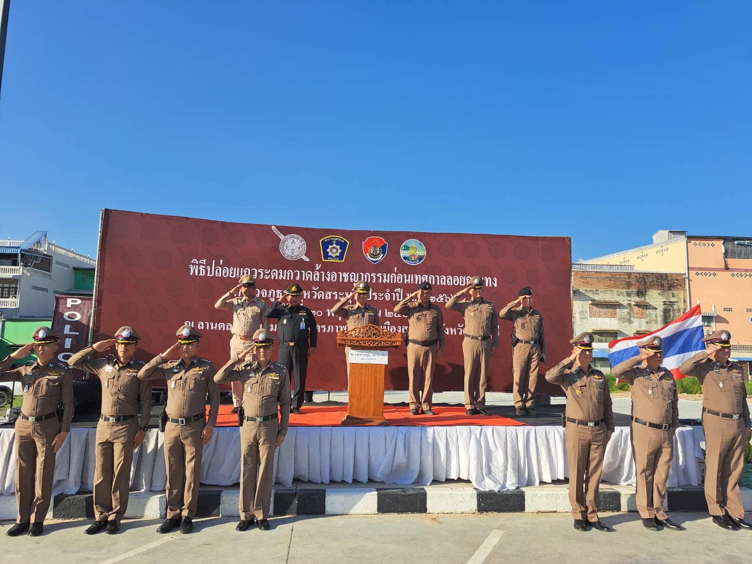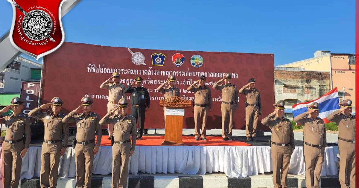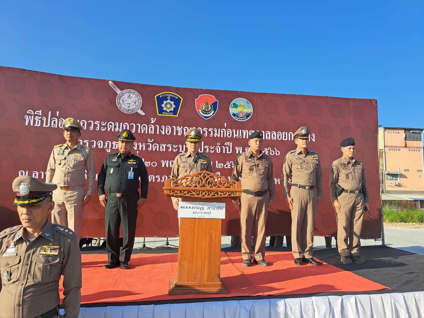 ร่วมพีธีปล่อยแถวระดมกวาดล้างอาชญากรรมก่อนเทศกาลลอยกระทง ปี 2566 เรื่อง มาตรการกำกับดูแลความปลอดภัย ในการจัดกิจกรรมงานประเพณีลอยกระทง ประจำปี 2566 ณ บริเวณลานตลาดอิ่มเอม ถนนมิตรภาพ อ.เมือง จ.สระบุรี