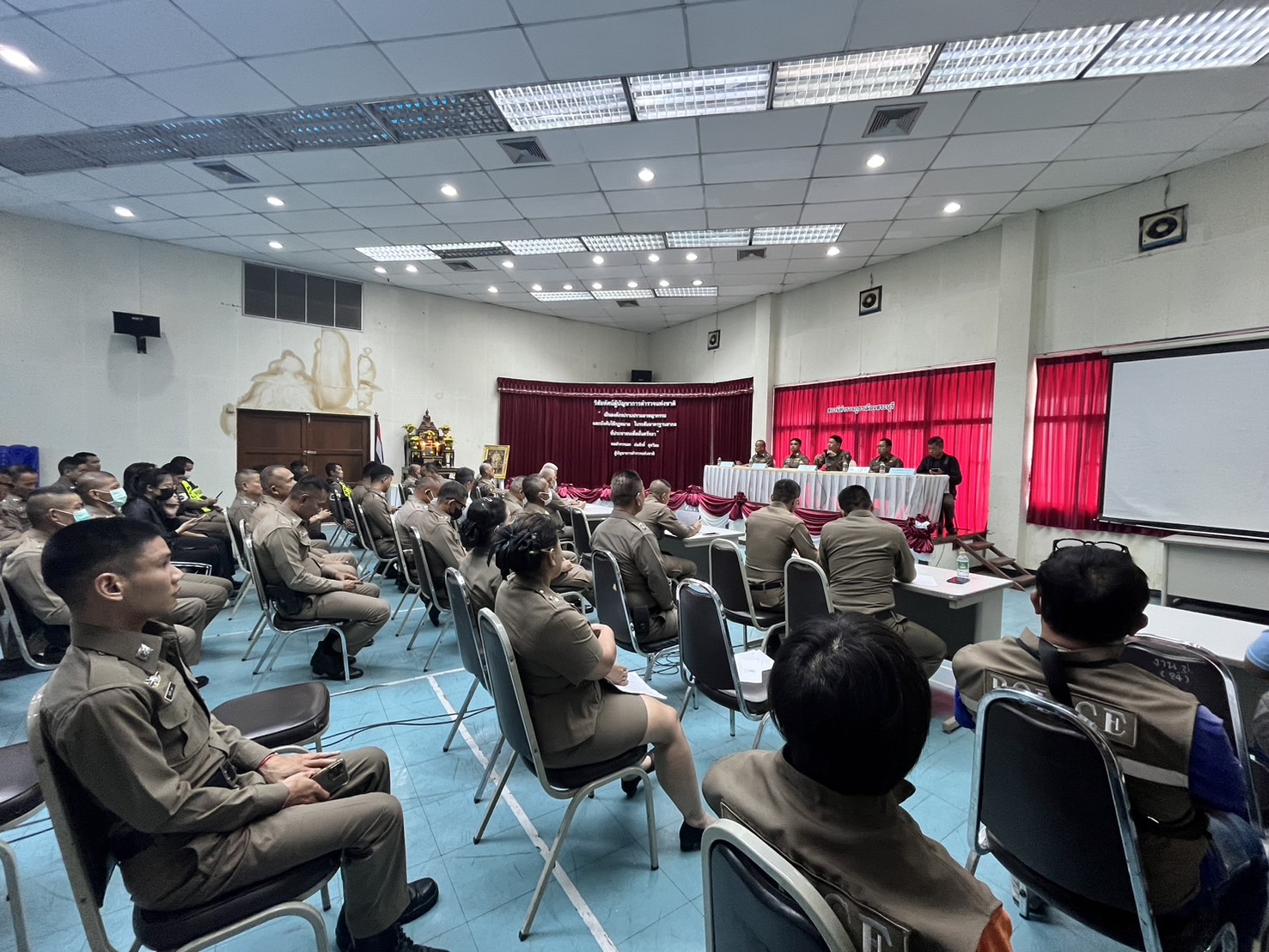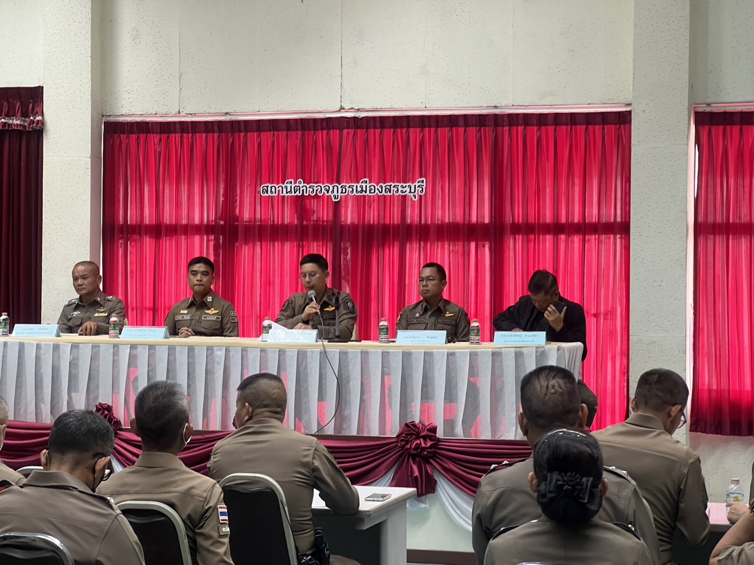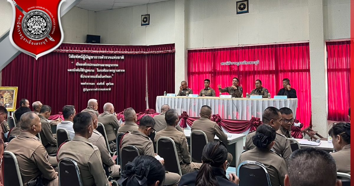 พ.ต.อ.สุริยะ สุดกังวาล ผกก.สภ.เมืองสระบุรี พ.ต.ท.ศักดิ์ศิษฎ์ สายปรีชา รอง ผกก.สส.สภ.เมืองสระบุรี พ.ต.ท.สิโรฒม์ คุณอุดม รอง ผกก.(สอบสวน)สภ.เมืองสระบุรี พ.ต.ท.สิทธิเดช เรืองสม รอง ผกก.จร.สภ.เมืองสระบุรี ได้ประชุมข้าราชการตำรวจ เพื่อมอบนโยบาย และแนวทางการปฏิบัติหน้าที่แก่ข้าราชการตำรวจ
