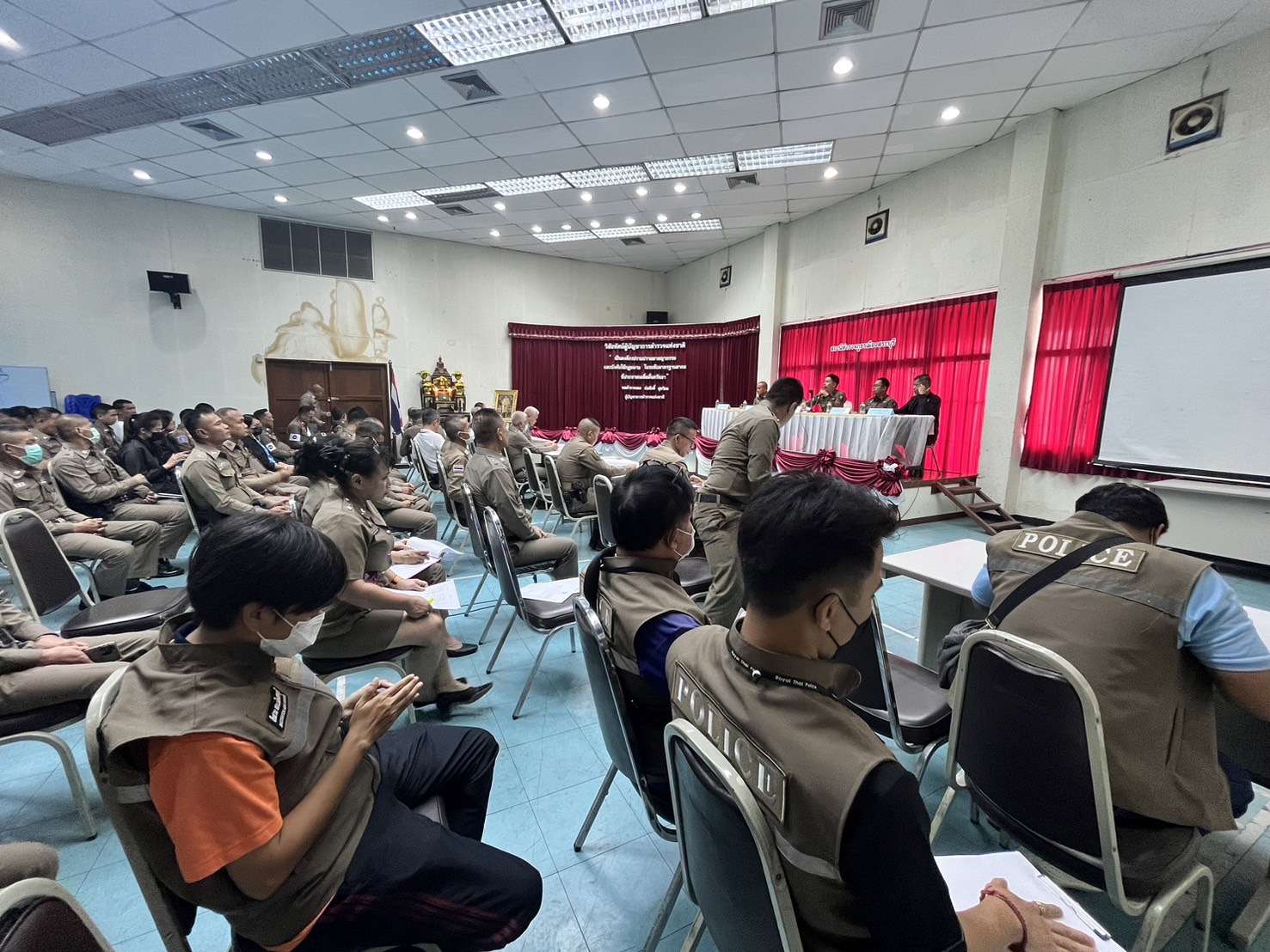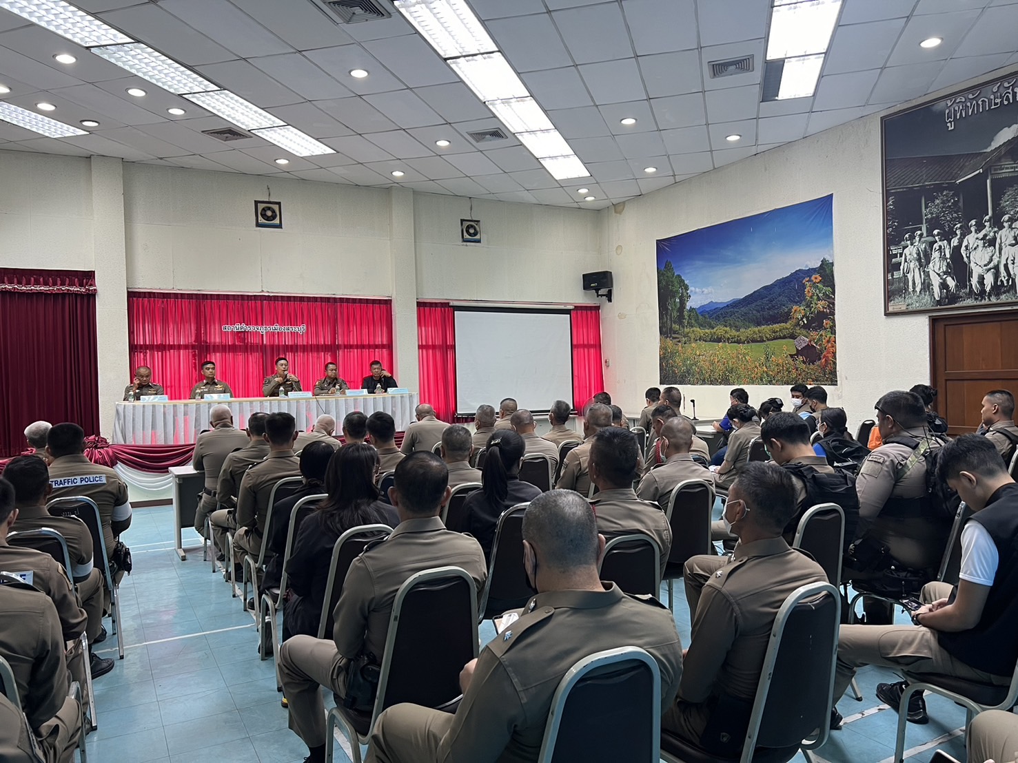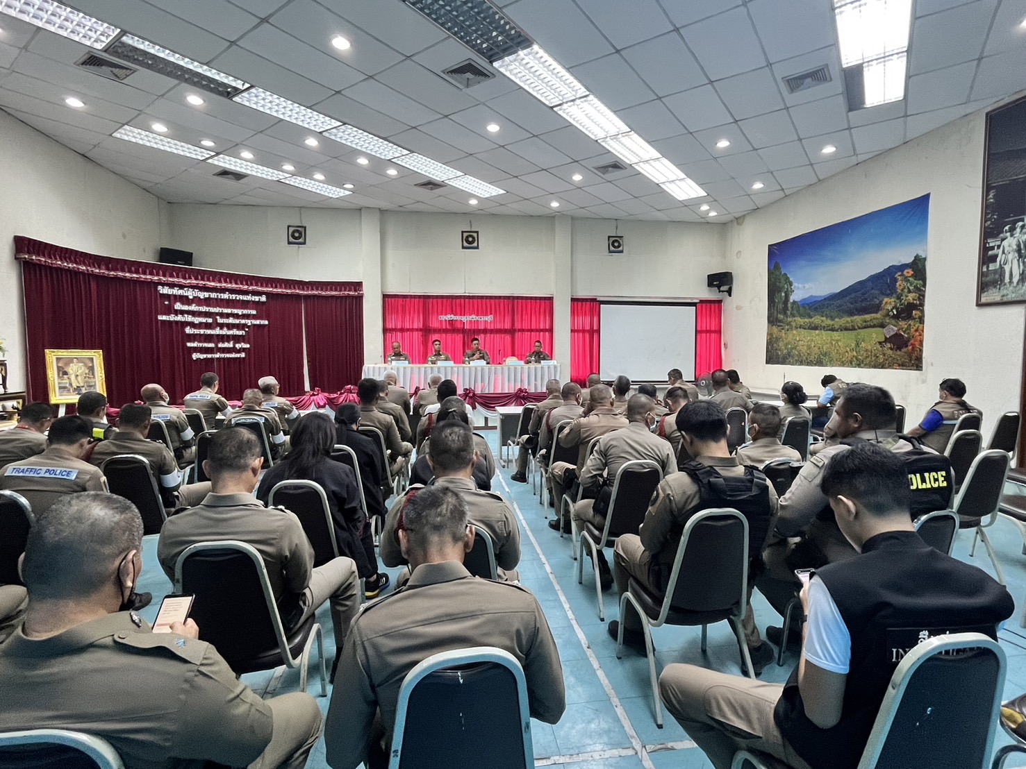 พ.ต.อ.สุริยะ สุดกังวาล ผกก.สภ.เมืองสระบุรี พ.ต.ท.ศักดิ์ศิษฎ์ สายปรีชา รอง ผกก.สส.สภ.เมืองสระบุรี พ.ต.ท.สิโรฒม์ คุณอุดม รอง ผกก.(สอบสวน)สภ.เมืองสระบุรี พ.ต.ท.สิทธิเดช เรืองสม รอง ผกก.จร.สภ.เมืองสระบุรี ได้ประชุมข้าราชการตำรวจ เพื่อมอบนโยบาย และแนวทางการปฏิบัติหน้าที่แก่ข้าราชการตำรวจ