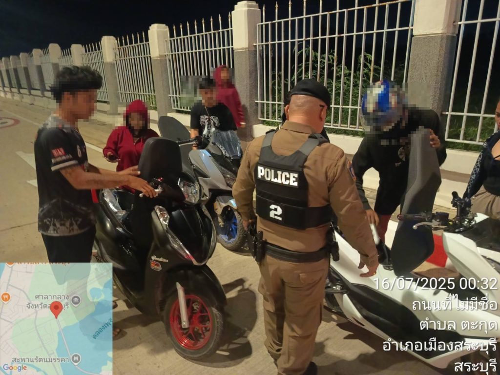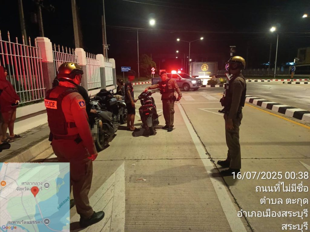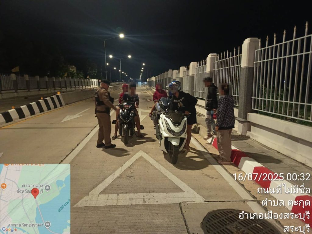 ป้องกันเหตุและป้องกันการแข่งขันรถในทาง บริเวณสะพานรัตนมรรคา ศูนย์ราชการจังหวัดสระบุรี ตรวจยึดรถ จยย. จำนวน 3 คัน