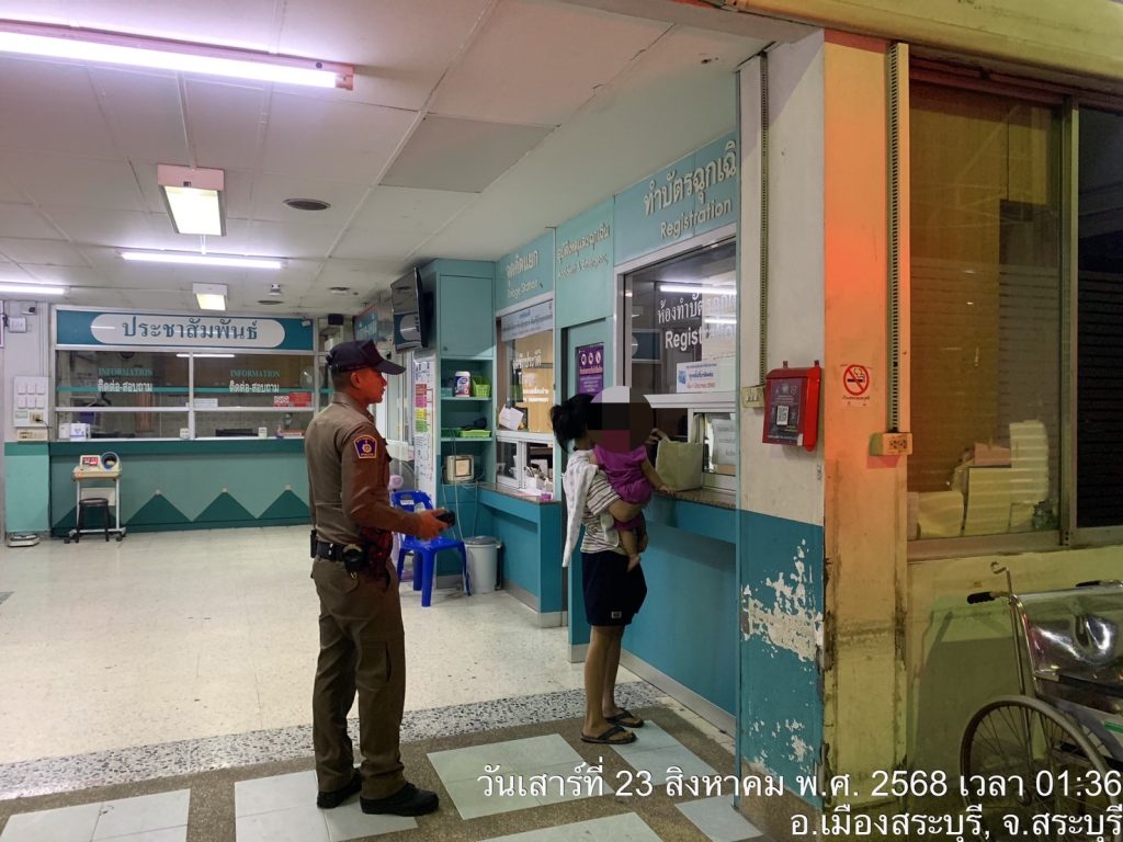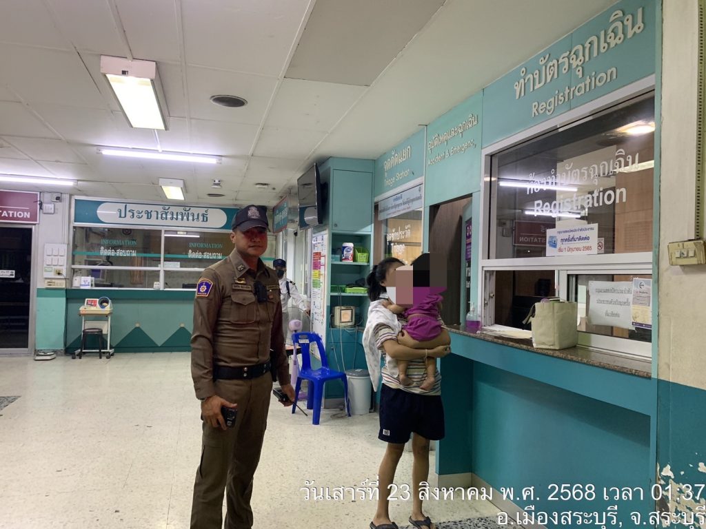 สายตรวจรถยนต์จึงดำเนินการช่วยเหลือพาตัวลูกส่งรักษาตัวที่โรงพยาบาลสระบุรี