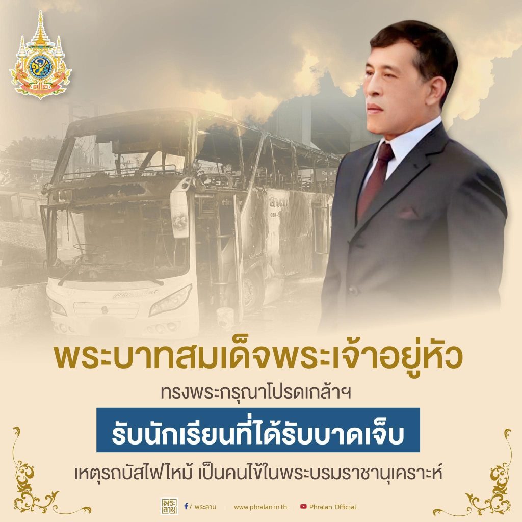พระบาทสมเด็จพระเจ้าอยู่หัว ทรงพระกรุณาโปรดเกล้าโปรดกระหม่อม รับนักเรียนที่ได้รับบาดเจ็บจากเหตุการณ์รถบัสไฟไหม้ เป็นคนไข้ในพระบรมราชานุเคราะห์
