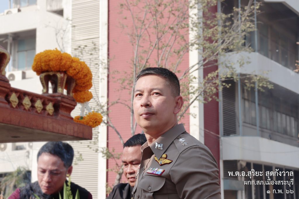 วันนี้ (1 กุมภาพันธ์ 2566) พันตำรวจเอก สุริยะ สุดกังวาล มาดำรงตำแหน่ง ผู้กำกับการสถานีตำรวจภูธรเมืองสระบุรี และสักการะะสิ่งศักดิ์สิทธิ์ในสถานีตำรวจภูธรเมืองสระบุรี โดยมีข้าราชการตำรวจในสังกัด ให้การต้อนรับ ในการนี้ได้ร่วมส่ง พันตำรวจเอก เชษฐชัย เชษฐศิริ ผู้กำกับการสถานีตำรวจภูธรเมืองสระบุรี ไปดำรงตำแหน่ง ผู้กำกับการสถานีตำรวจภูธรนครหลวง ตำบล ปากจั่น อำเภอนครหลวง จังหวัดพระนครศรีอยุธยา