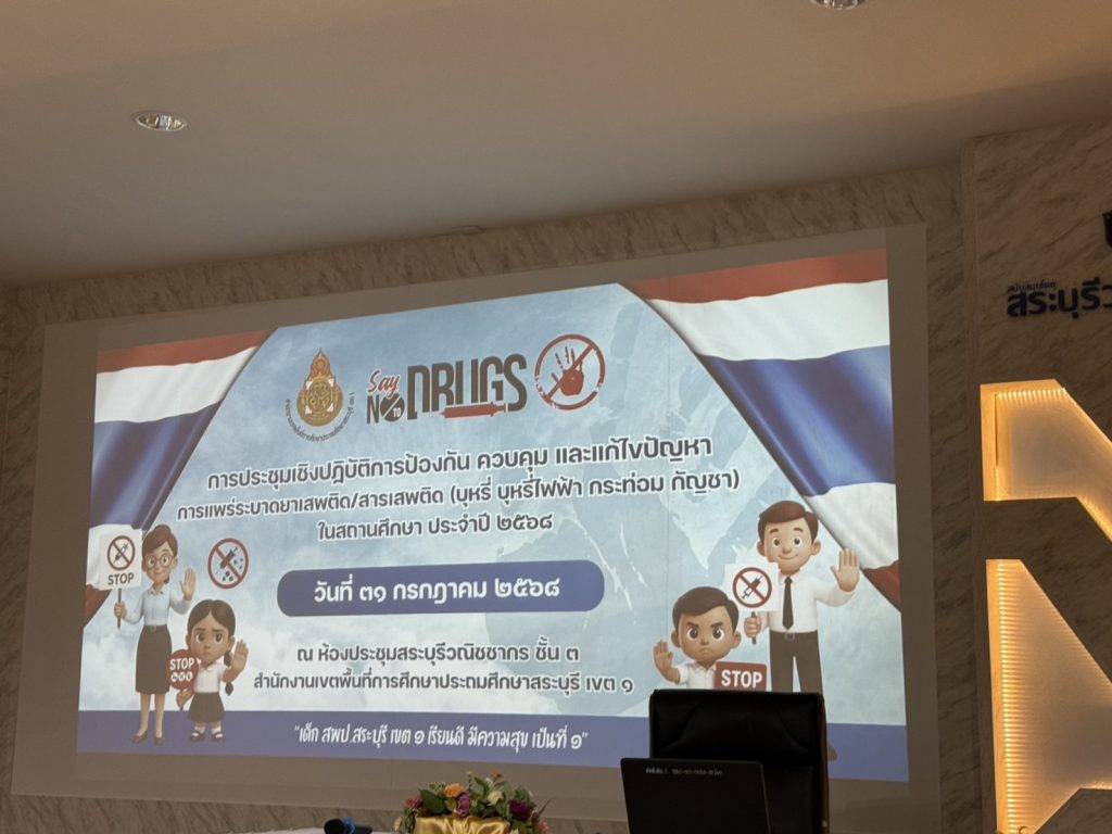 พ.ต.ต.อาทิตย์ คำแกม สวป.สภ.เมืองสระบุรี บรรยายการป้องกันและแก้ไขปัญหายาเสพติด ณ ห้องประชุมสระบุรีวณิชชากร ชั้น3 สำนักงานเขตพื้นที่การศึกษาประถมศึกษาสระบุรี เขต 1