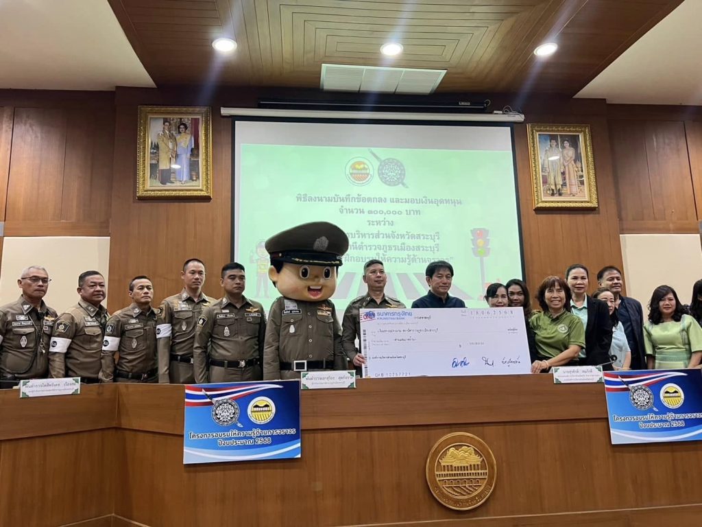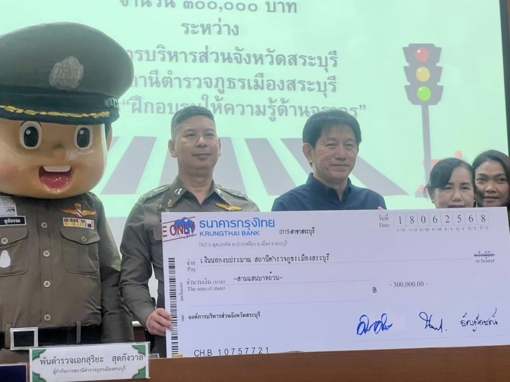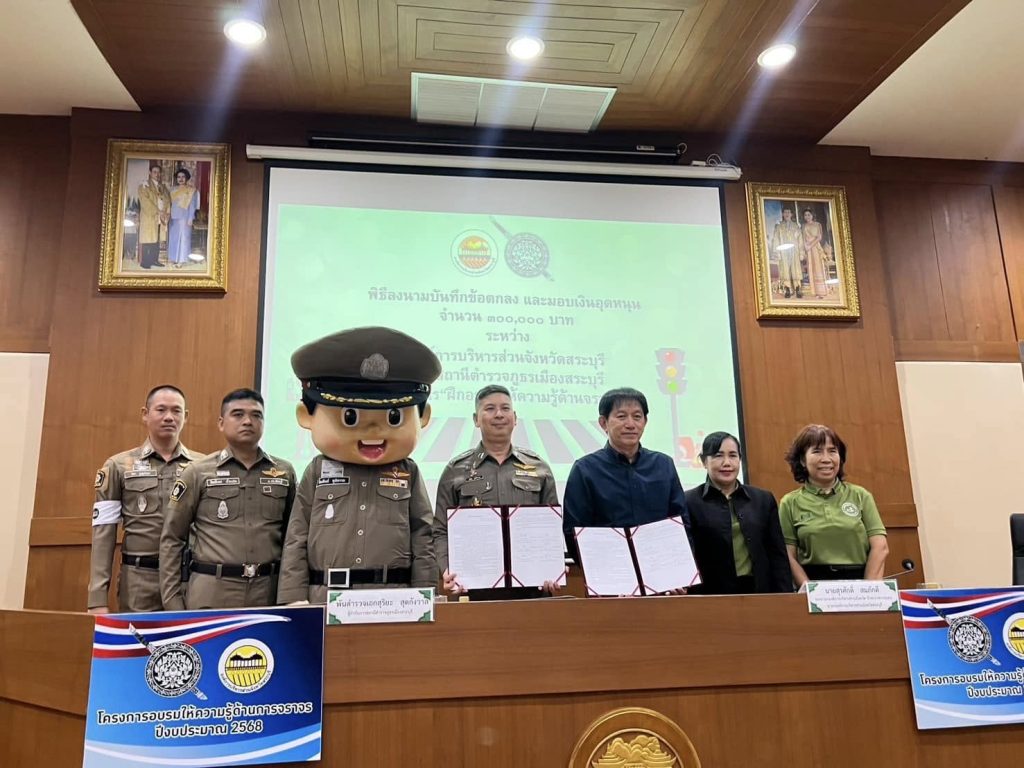 พ.ต.ท.สิทธิเดช เรืองสม รอง ผกก.จร.ฯ พร้อมด้วย ตร.จร.สภ.เมืองสระบุรี เข้าร่วมพิธีลงนามบันทึกข้อตกลง ระหว่างองค์การบริหารส่วนจังหวัดสระบุรี และสถานีตำรวจภูธรเมืองสระบุรี เพื่อใช้ในโครงการ“ฝึกอบรมให้ความรู้ด้านจราจร”