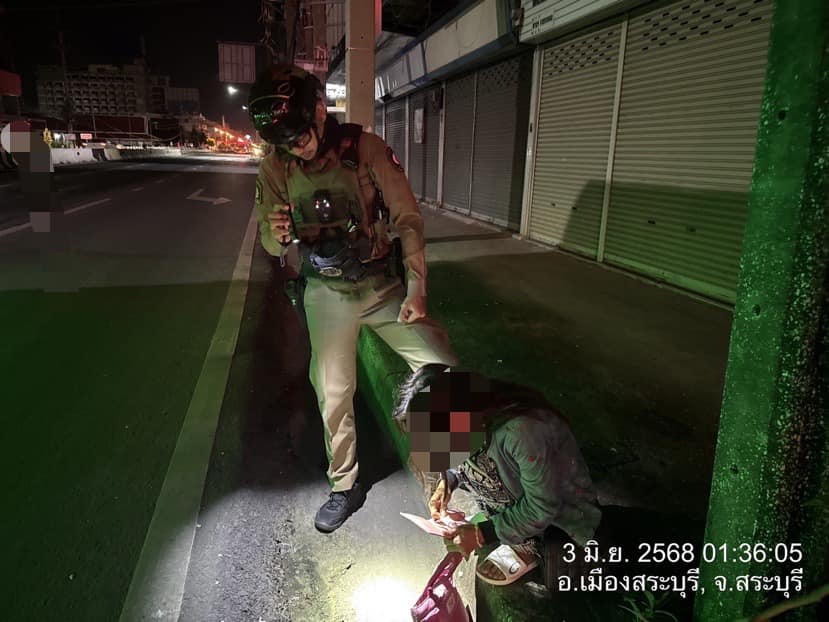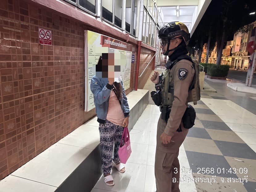 ระหว่างออกตรวจป้องกันเหตุ พบหญิงนั่งร้องไห้ บริเวณหน้าโรงเจ จึงได้สอบถาม และนำส่งกลับที่พัก ต.โคกสว่าง เรียบร้อย