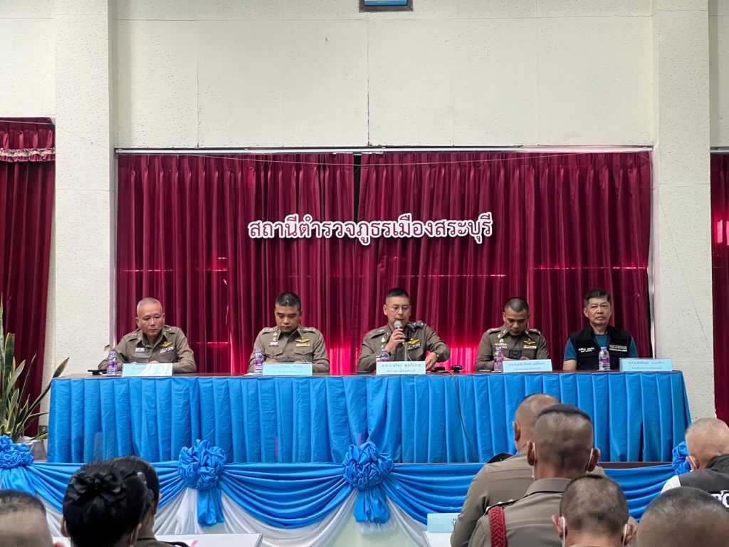 พ.ต.อ.สุริยะ สุดกังวาล ผกก.สภ.เมืองสระบุรี ประชุมมอบนโยบาย ข้อสั่งการ ระเบียบ ข้อบังคับ ให้แก่ข้าราชการตำรวจ สภ.เมืองสระบุรี ภายใต้มาตราการป้องกันเหตุ และรักษาความสงบเรียบร้อย ในช่วงเทศกาลสงกรานต์ 2566 ณ สภ.เมืองสระบุรี