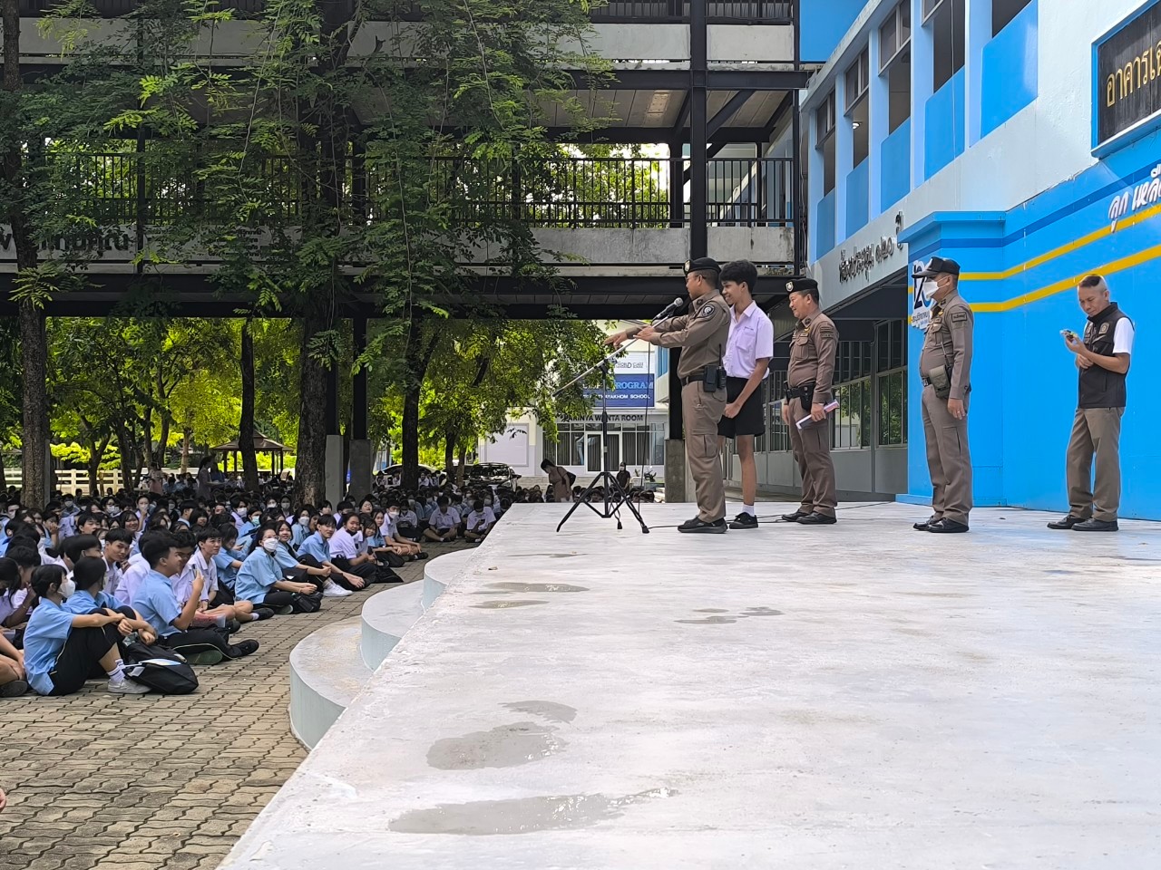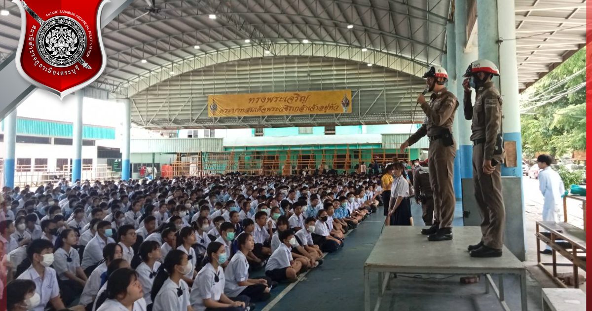 พร้อมเจ้าหน้าที่ตำรวจ สภ.เมืองสระบุรี ให้ความรู้มาตรการป้องกันและควบคุมบุหรี่ บุหรี่ไฟฟ้าในสถานศึกษา เนื่องในวัน “วันงดสูบบุหรี่โลก” ให้กับนักเรียนโรงเรียนสระบุรีวิทยาคม