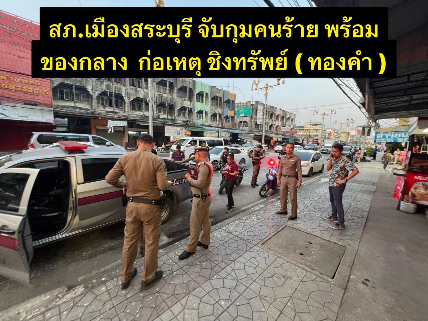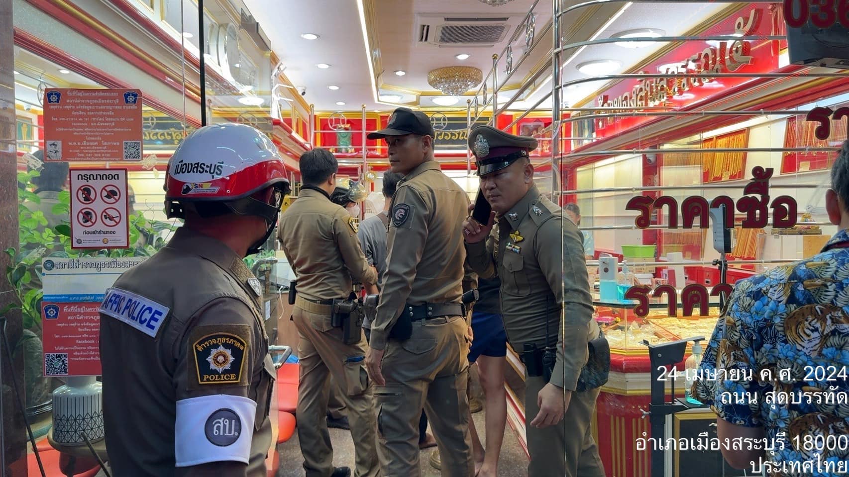 เวลาประมาณ 18.00 น. เวรสืบสวน , เวร 20 , ร้อยเวร 30 อาญา ได้รับแจ้งเหตุ ชิงทรัพย์ ที่ร้านทอง ถนนสุดบรรทัด ต.ปากเพรียว อ.เมือง จ.สระบุรี จึงรีบเข้าตรวจสอบ