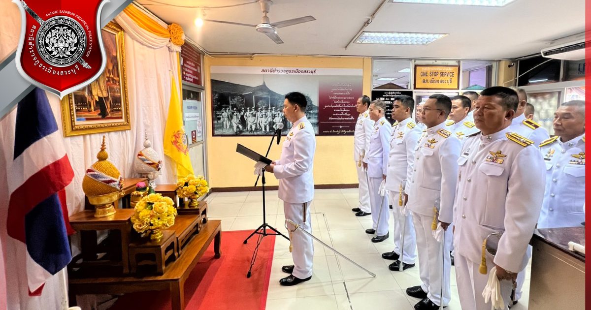 พ.ต.อ.สุริยะ สุดกังวาล ผกก. สภ.เมืองสระบุรี พร้อมด้วยข้าราชการตำรวจ สภ.เมืองสระบุรี ร่วมพิธีถวายสัตย์ปฏิญาณเพื่อเป็นข้าราชการที่ดี และพลังของแผ่นดิน และพิธีลงนามถวายพระพร เพื่อเป็นการแสดงความจงรักภักดีแด่พระบาทสมเด็จพระวชิรเกล้าเจ้าอยู่หัว เนื่องในโอกาสมหามงคลวันเฉลิมพระชนมพรรษา 6 รอบ 28 กรกฎาคม 2567 ณ สภ.เมืองสระบุรี