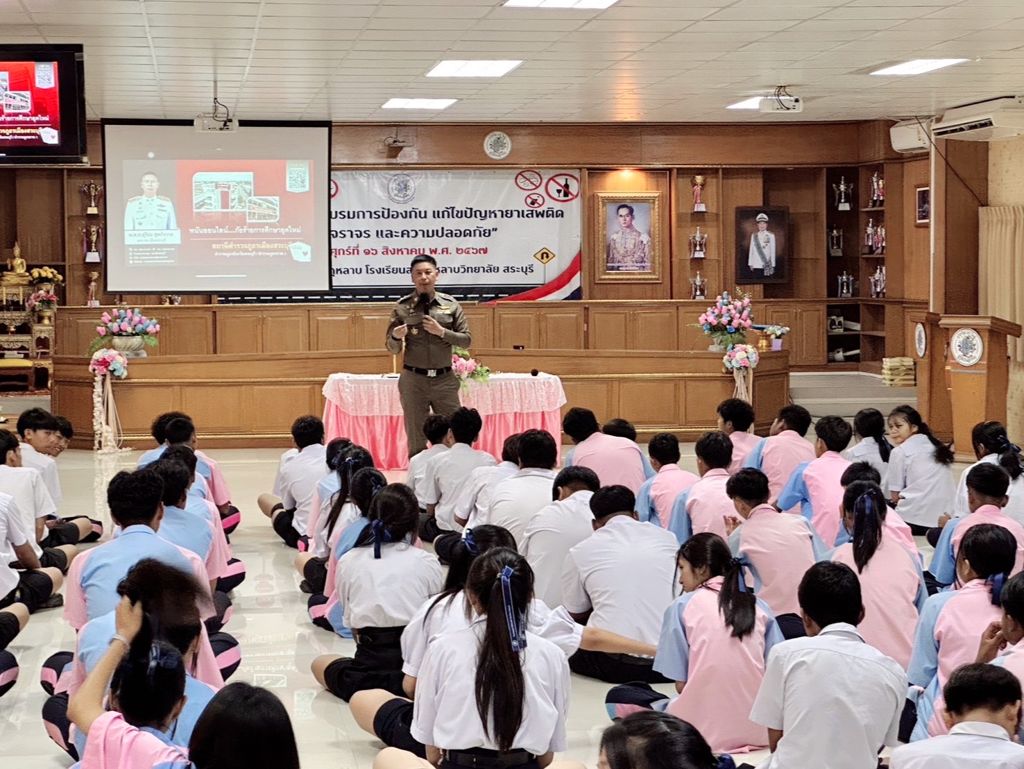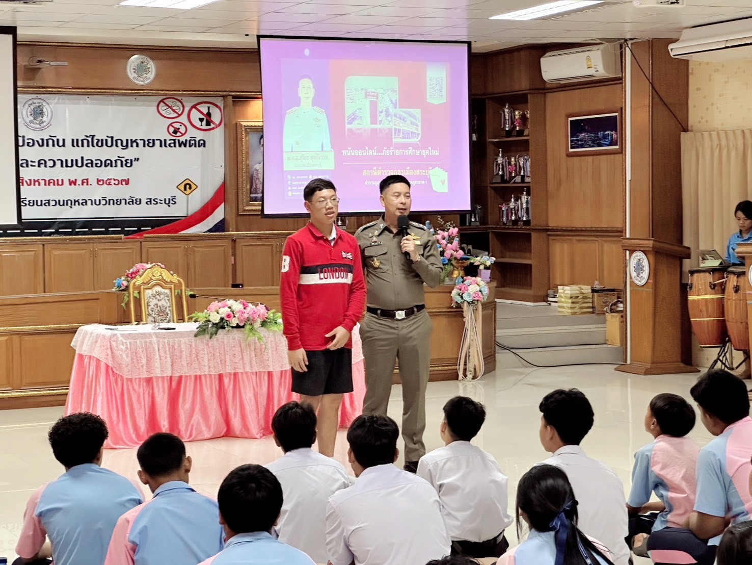 จัดทำโครงการฝึกอบรมการป้องกัน แก้ไขปัญหายาเสพติด การจราจรและความปลอดภัย ประจำปี 2567 เพื่อให้ความรู้แก่ ครู นักเรียน เกี่ยวกับยาเสพติดและพิษภัยของบุหรี่ไฟฟ้า พร้อมบทลงโทษตามกฎหมายผู้ที่หลงผิดเข้าสู่วงจรการซื้อขายเสพยาเสพติดรวมทั้งการอบรมให้ความรู้เรื่องการจราจรและความปลอดภัย เพื่อเสริมสร้างวินัยจราจรและปฏิบัติได้อย่างถูกต้องช่วยลดอุบัติเหตุ ณ โรงเรียนสวนกุหลาบวิทยาลัย สระบุรี