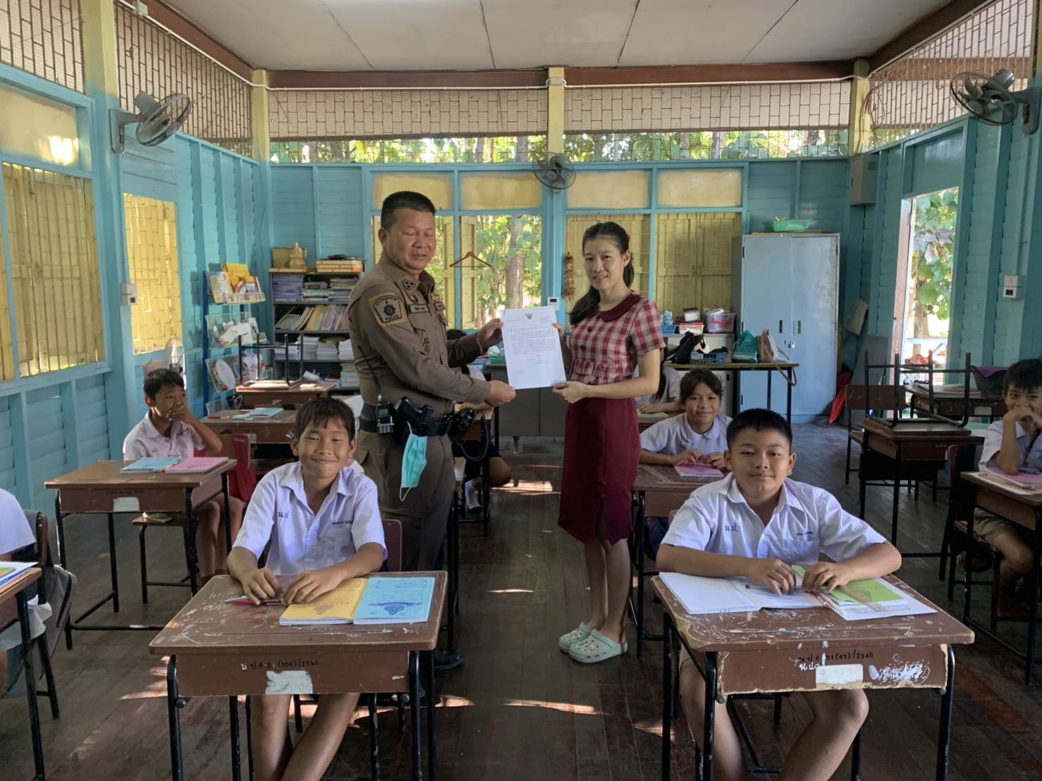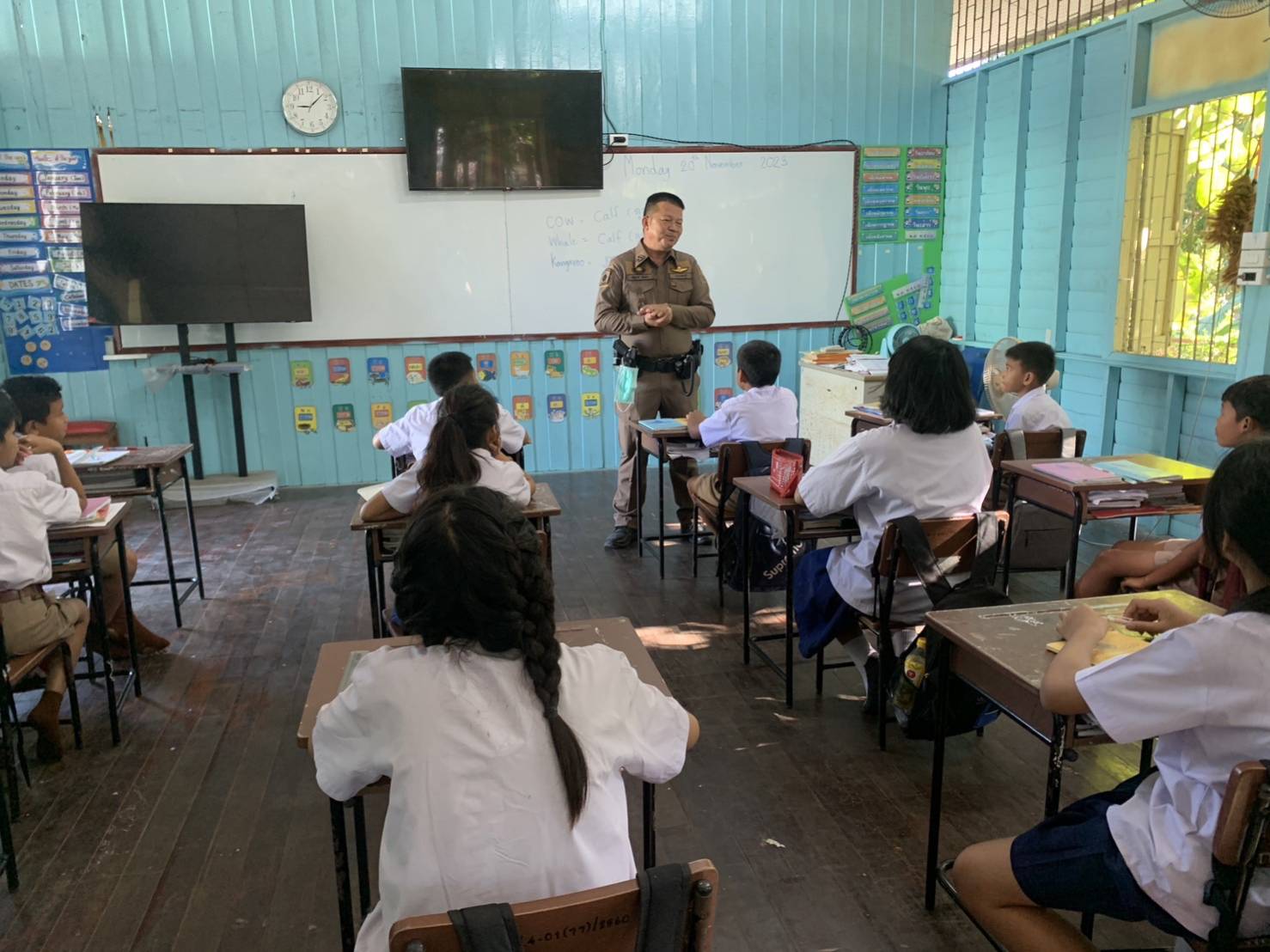 สอนนักเรียนตามโครงการการศึกษาเพื่อต่อต้านการใช้ยาเสพติดในเด็กนักเรียน(D.A.R.E.)