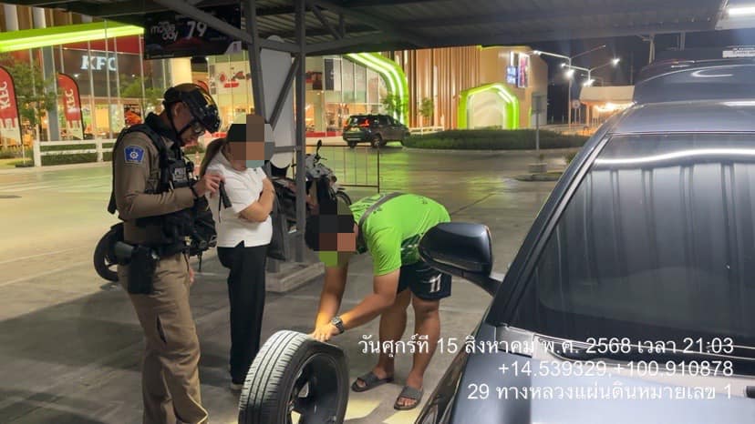 สายตรวจ จยย.ช่วยเหลือประชาชน ยางรถยนต์เสียหาย