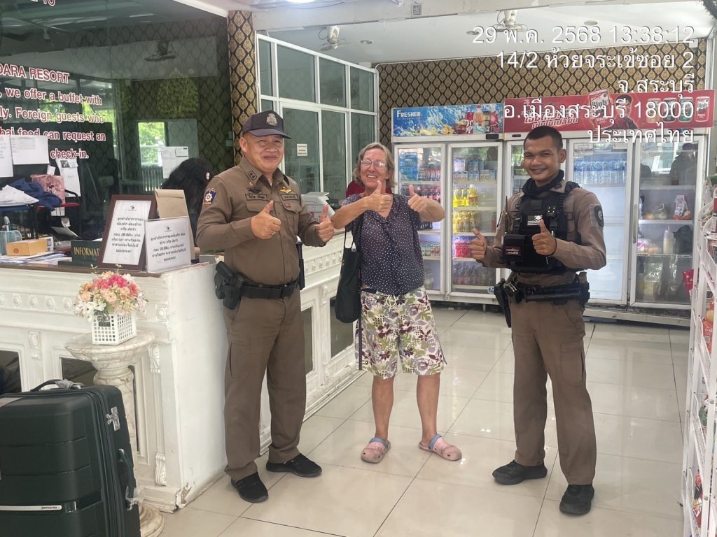 สายตรวจ รับแจ้งหญิงชาวต่างชาติพลัดหลง จึงรีบเข้าตรวจสอบ และได้สอบถามที่พัก นำส่งเรียบร้อย