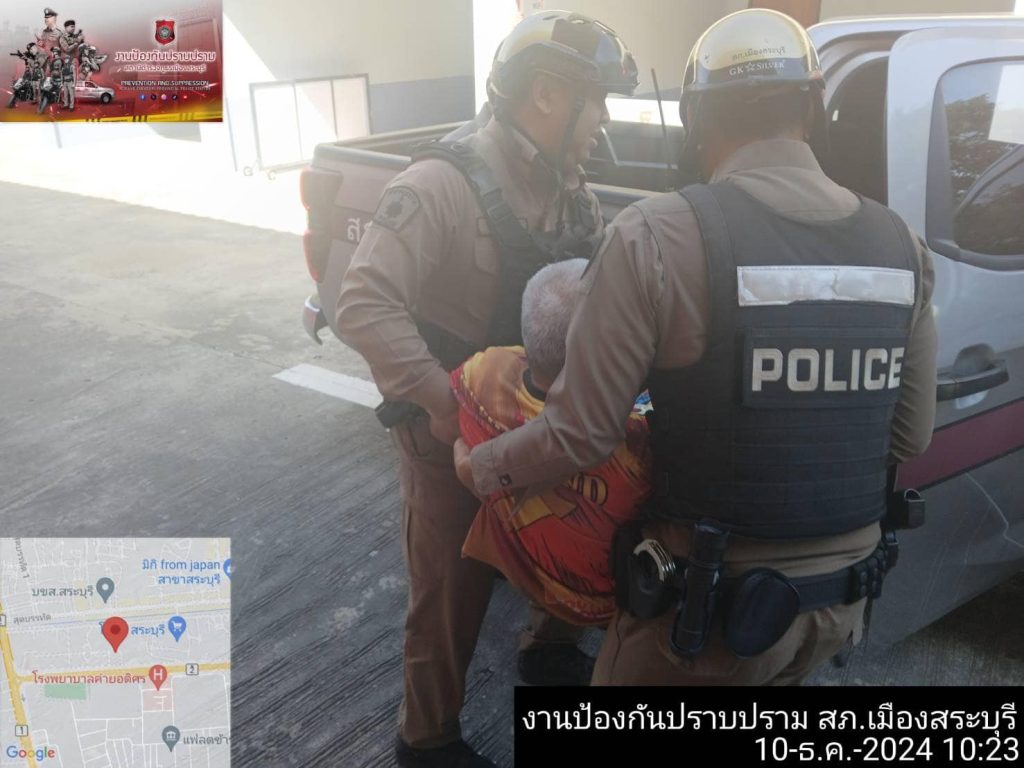 สายตรวจ สภ.เมืองสระบุรี รวจสอบ และให้ความช่วยเหลือชายพิการ ที่ถูกหลอกมาจากจังหวัดชุมพร