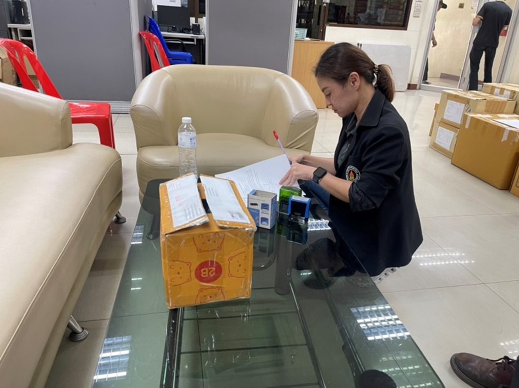 เจ้าหน้าที่ของกลาง งานสอบสวน นำบุหรี่ไฟฟ้าที่ตรวจยึดจากผู้ต้องหา เข้าตรวจสอบที่กรมศุลกากร