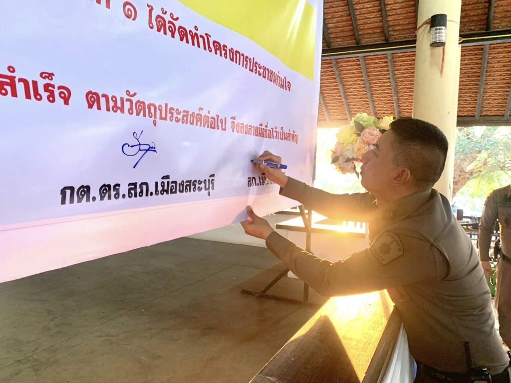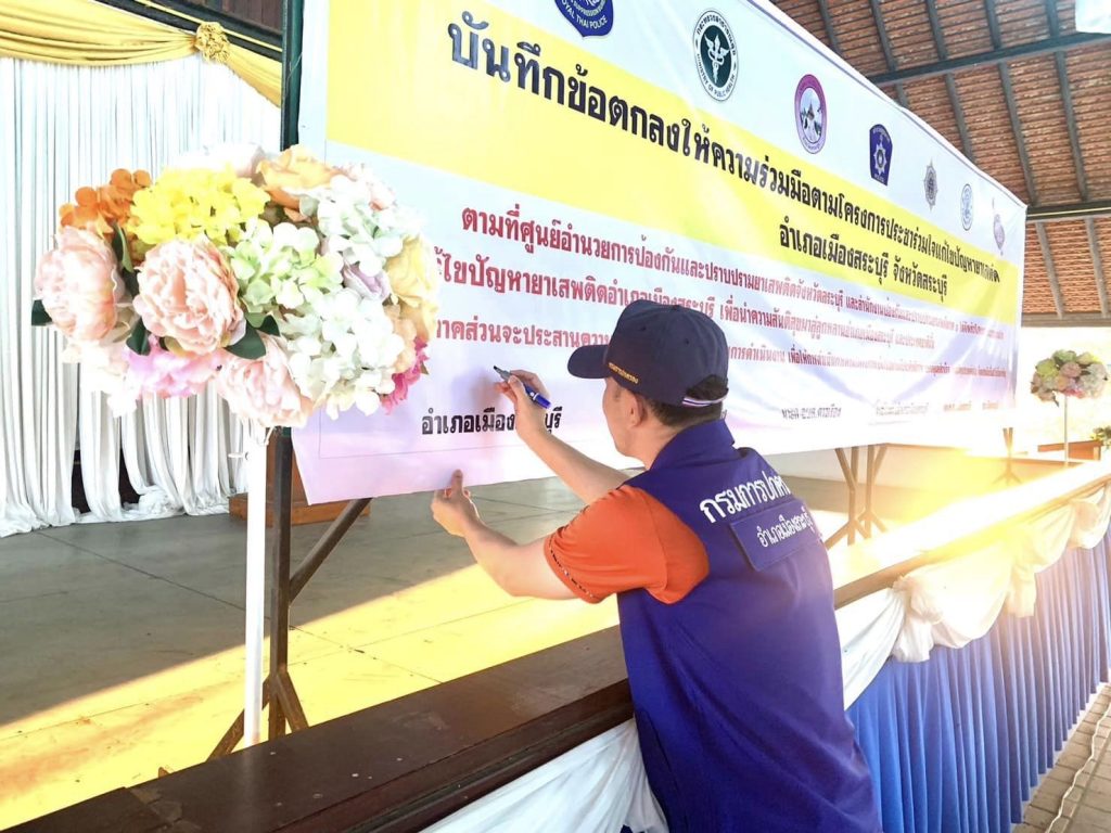 ร่วมเปิดโครงการชุมชนยั่งยืน เพื่อแก้ไขปัญหายาเสพติดแบบครบวงจรตามยุทธศาสตร์ชาติ (ปักกลด) และพิธีลงนามบันทึกข้อตกลงให้ความร่วมมือตามโครงการประชาร่วมใจแก้ไขปัญหายาเสพติด ณ ศาลาเอนกประสงค์ บ้านโตนด หมู่ 6 ต.ดาวเรือง อ.เมืองสระบุรี จ.สระบุรี