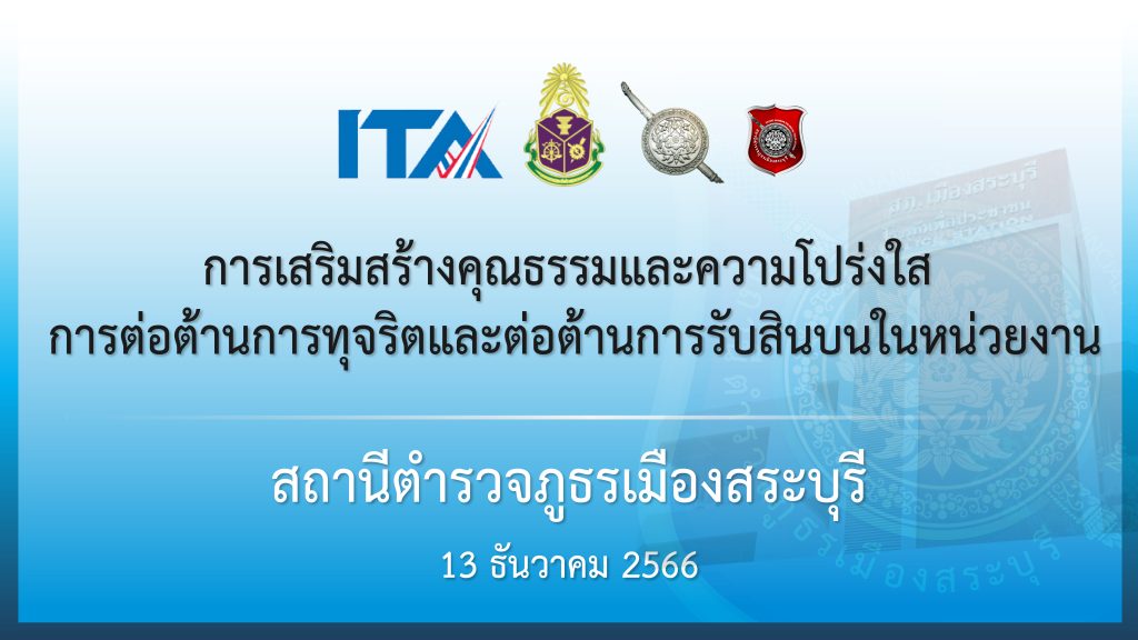 ชี้แจง อบรมข้าราชการตำรวจในสังกัด สภ.เมืองสระบุรี ทุกนาย เรื่อง เสริมสร้างคุณธรรม และความโปร่งใส ในหน่วยงาน และต่อต้านการทุจริต และรับสินบนในหน่วยงาน ให้เป็นองค์กรที่โปร่งใส ตรวจสอบได้ และให้ข้าราชการตำรวจในสังกัดทุกนาย มีจิตสำนึกในคุณธรรม จริยธรรมที่ดี ต่อการปฏิบัติงาน เพื่อประชาชน