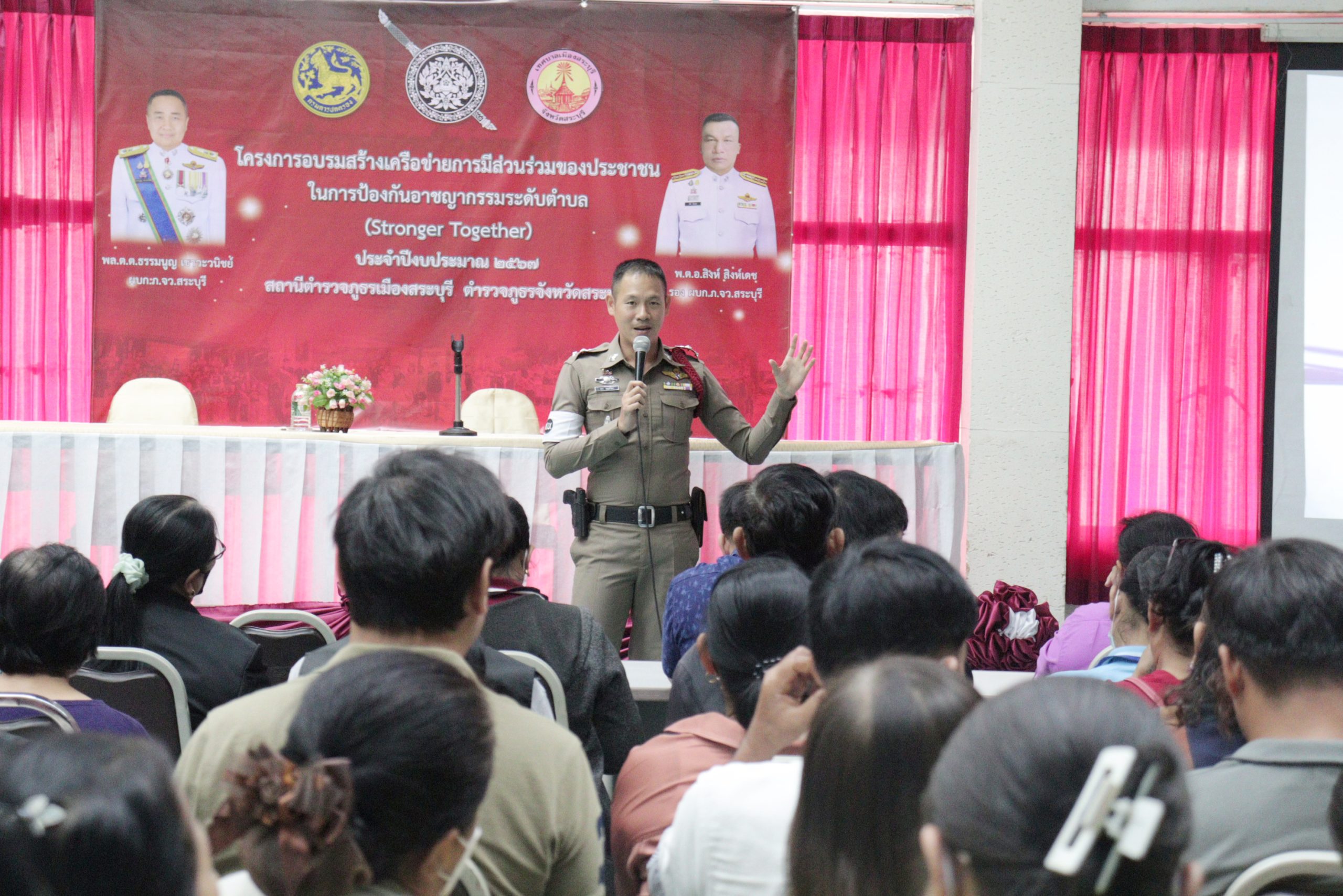 “โครงการอบรมการสร้างเครือข่ายการมีส่วนร่วมของประชาชนในการป้องกันอาชญากรรมระดับตำบล เพื่อสนับสนุนการป้องกันอาชญากรรมตามนโยบายขับเคลื่อนไทยไปด้วยกัน (Stronger Together)” ณ ห้องประชุม สภ.เมืองสระบุรี จังหวัดสระบุรี
