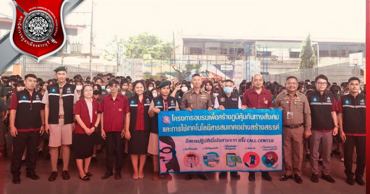 พ.ต.อ.สุริยะ สุดกังวาล ผกก.สภ.เมืองสระบุรี พร้อม ข้าราชการตำรวจครูแดร์ D.A.R.E. สภ.เมืองสระบุรี ร่วม วิทยาลัยอาชีวะศึกษาสระบุรี จัดโครงการ หนึ่งตำรวจหนึ่งวิทยาลัย เพื่อให้นักศึกษาได้รับความรู้เกี่ยวกับโทษของยาเสพติด ต่อตนเอง และสังคม รวมถึงโทษของบุหรี่ไฟฟ้า และการป้องกันอาชญากรรมออนไลน์ประเภทต่างๆ ทั้งนี้ได้ร่วมทำ ร่วมทำแบบทดสอบ วัคซีนไซเบอร์ สร้างความรู้เกี่ยวกับ การหลอกลวงออนไลน์ – รูปแบบกลโกง เพื่อชิงรางวัล Iphone 14 จำนวน 20 เครื่องต่อเดือน ณ วิทยาลัยอาชีวะศึกษาสระบุรี