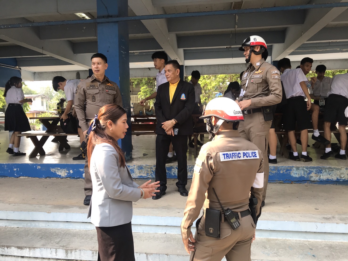 พ.ต.ต.อาทิตย์ คำแกม สวป.สภ.เมืองสระบุรี ร.ต.อ. สามารถ เยาวยอด รอง สว.จร. สภ.เมืองสระบุรี และ ด.ต.ฤทธิชัย สุวรรณโท ผบ.หมู่(ป.) สภ.เมืองสระบุรี ปฏิบัติหน้าที่ ร้อยเวร 2-0 พร้อมกำลัง สายตรวจจราจร, สายตรวจรถยนต์201, สายตรวจรถจักรยานยนต์ 121,122 ดำเนินการตามโครงการให้ความรู้แก่คณะครู อาจารย์ นักเรียน โรงเรียนสระบุรีวิทยาคม ให้ความรู้แก่ครู,อาจารย์,นักเรียน เกี่ยวกับกียวกับกฏหมายจราจร,การใช้รถฯบนท้องถนนให้ปลอดภัย การป้องกันการถูกหลอกลวงทางเทคโนโลยี วิธี หนี ซ่อน สู้