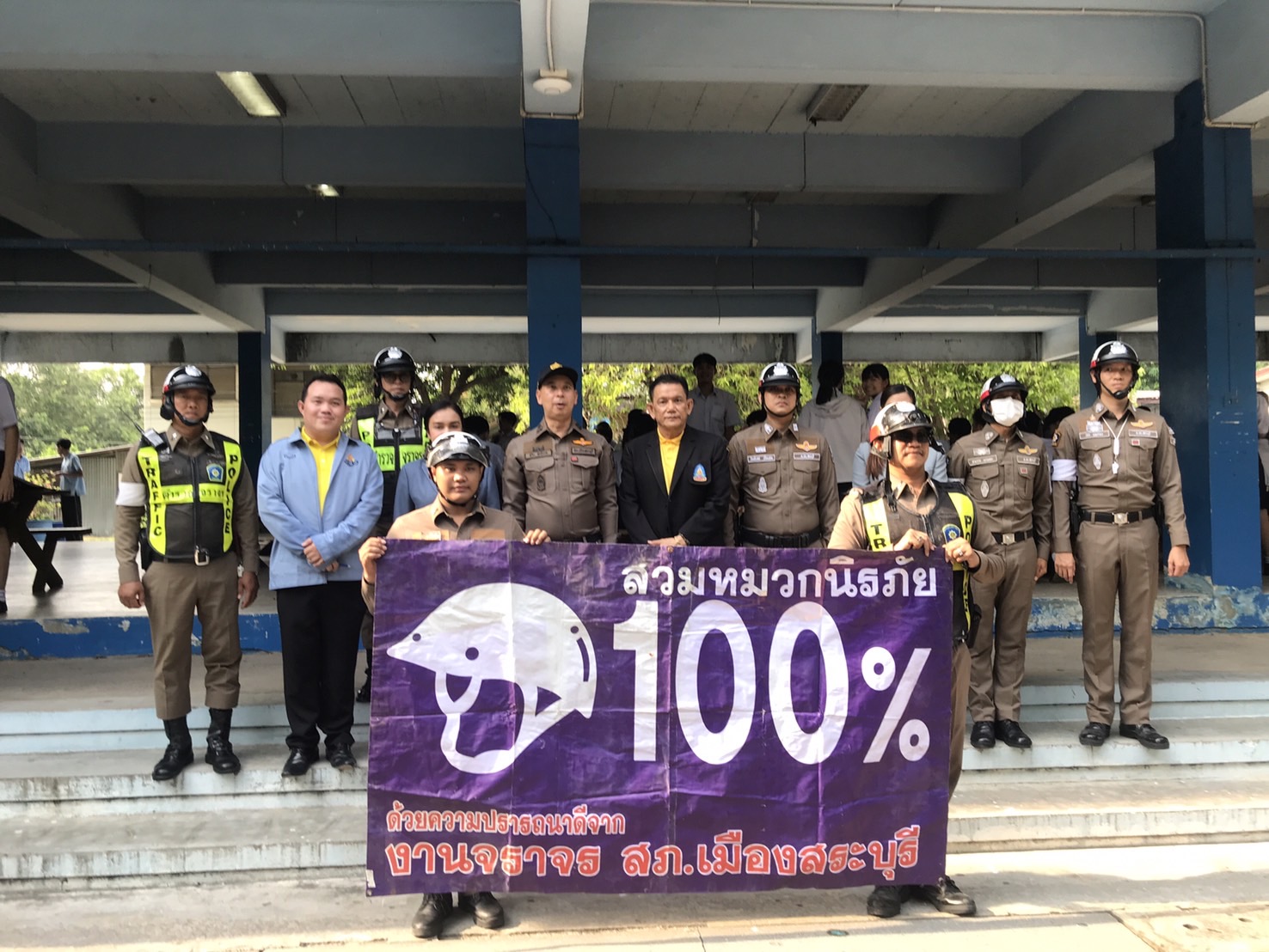 พ.ต.อ.สุริยะ สุดกังวาล ผกก.สภ.เมืองสระบุรี พ.ต.ท. สิทธิเดช เรืองสม รอง ผกก.จร. สภ.เมืองสระบุรี พ.ต.ท. รตา บุญนำมา สว.จร. สภ.เมืองสระบุรี