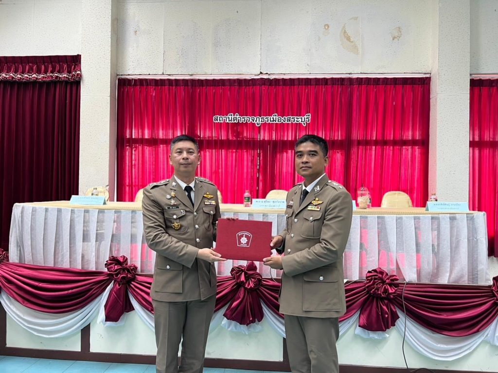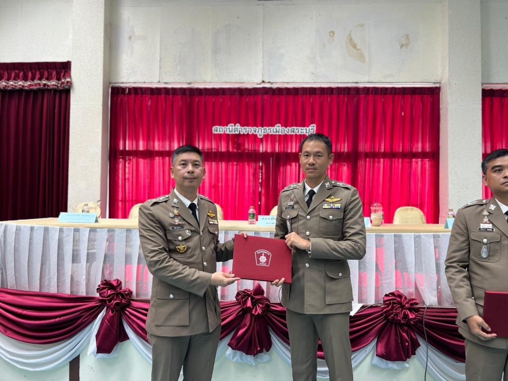 สักการะสิ่งศักดิ์สิทธิ์ประจำ สภ.เมืองสระบุรี พร้อมมอบใบประกาศเชิดชูเกียรติแก่ข้าราชการตำรวจเพื่อเป็นแบบอย่างที่ดี ณ สภ.เมืองสระบุรี