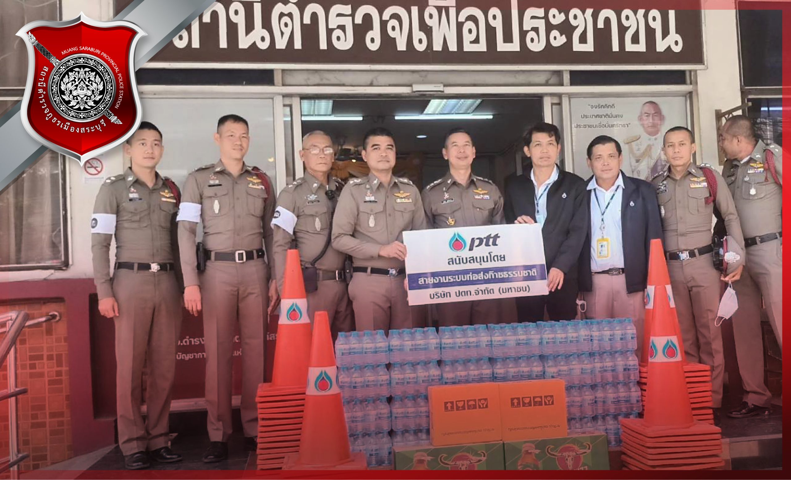 บริษัท ปตท.จำกัด (มหาชน) สนับสนุนอุปกรณ์กรวยยาง น้ำดื่ม เครื่องดื่มชูกำลัง เพื่อแจกจ่ายให้กับประชาชน ที่ใช้รถใช้ถนนในช่วงเทศกาลสงกรานต์ ปี 2566