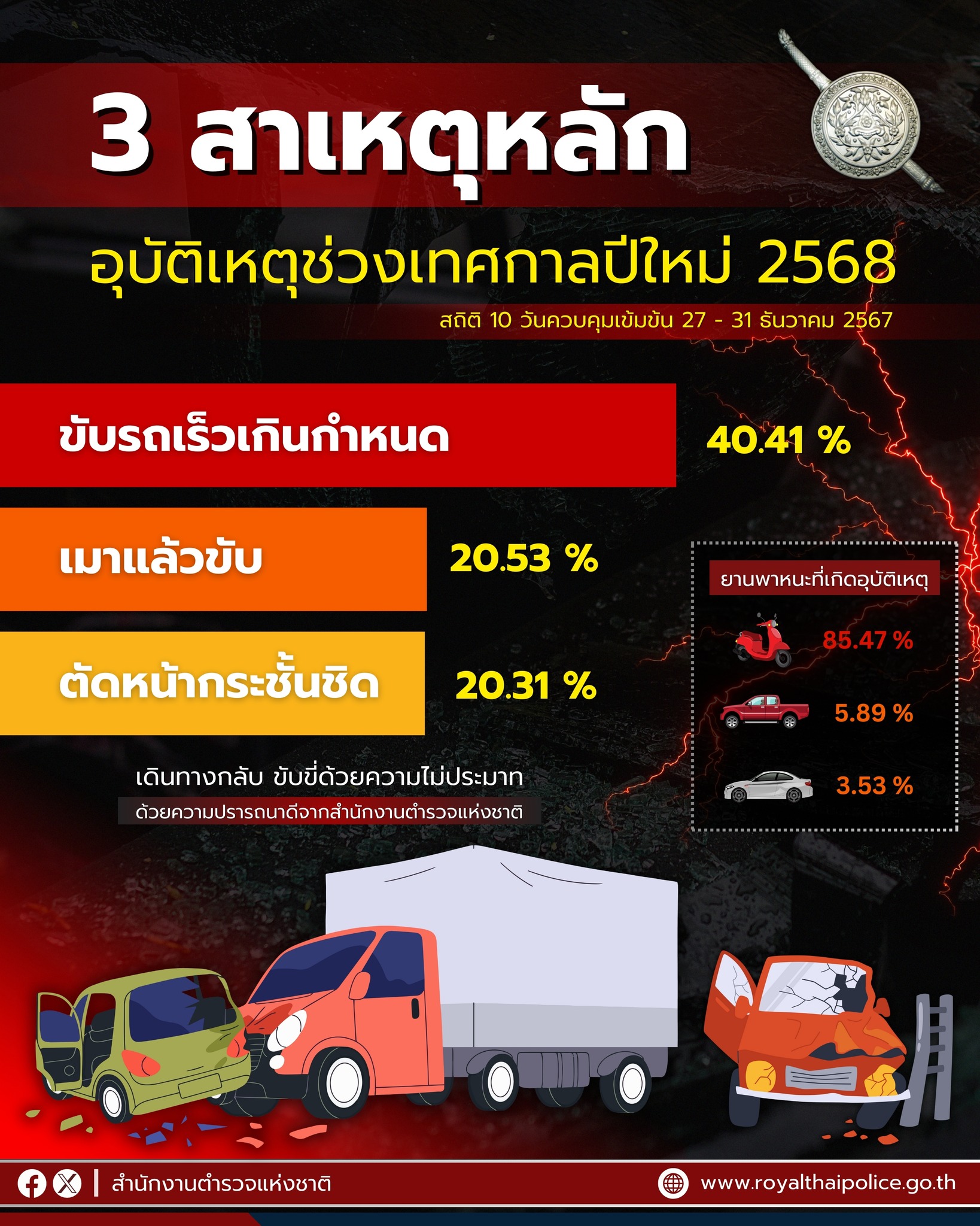 เพื่อความปลอดภัยของท่าน และเพื่อนร่วมทาง ช่วง 10 วันควบคุมเข้มข้น เกิดอุบัติเหตุบนท้องถนนต่อเนื่อง พ