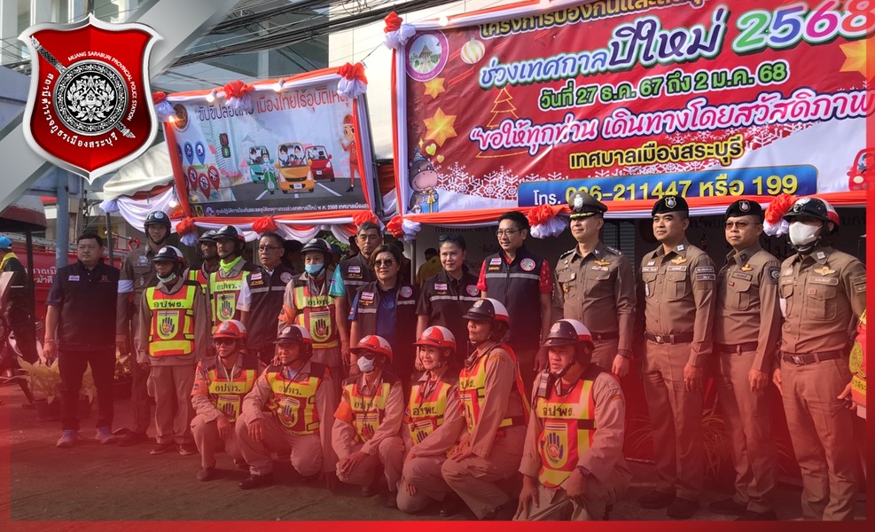 ผกก.สภ.เมืองสระบุรี งานป้องกันปราบปราม งานจราจร และงานอำนวยการ ร่วมเปิดโครงการป้องกัน และลดอุบัติเหตุทางถนนช่วงเทศกาลปีใหม่ พ.ศ. 2568